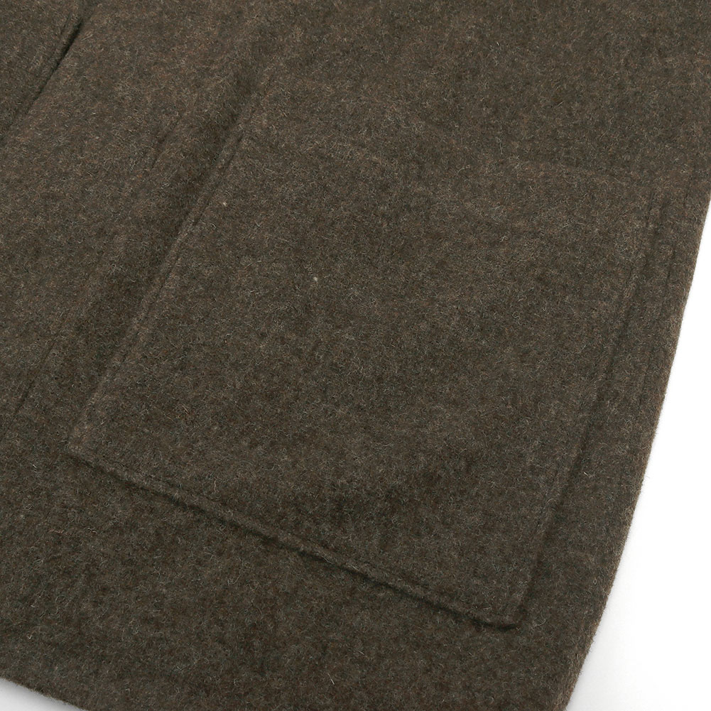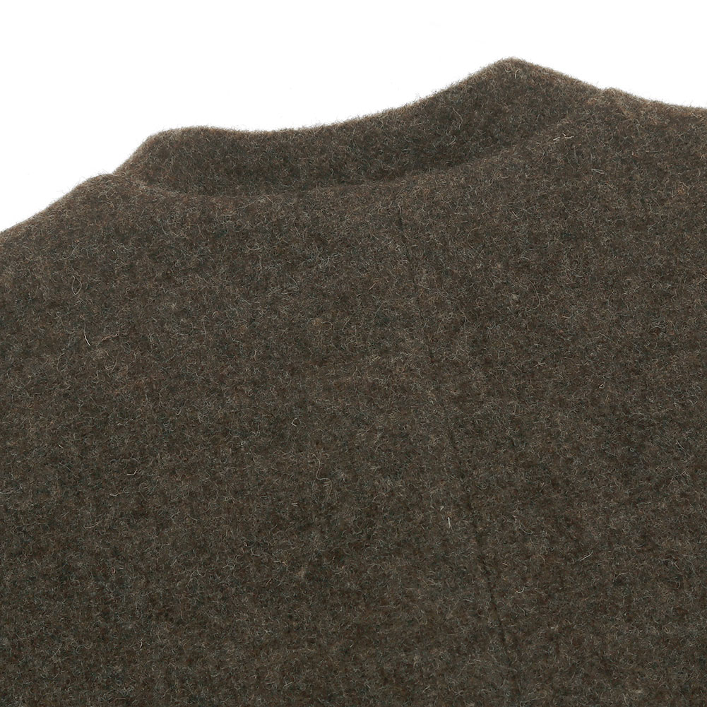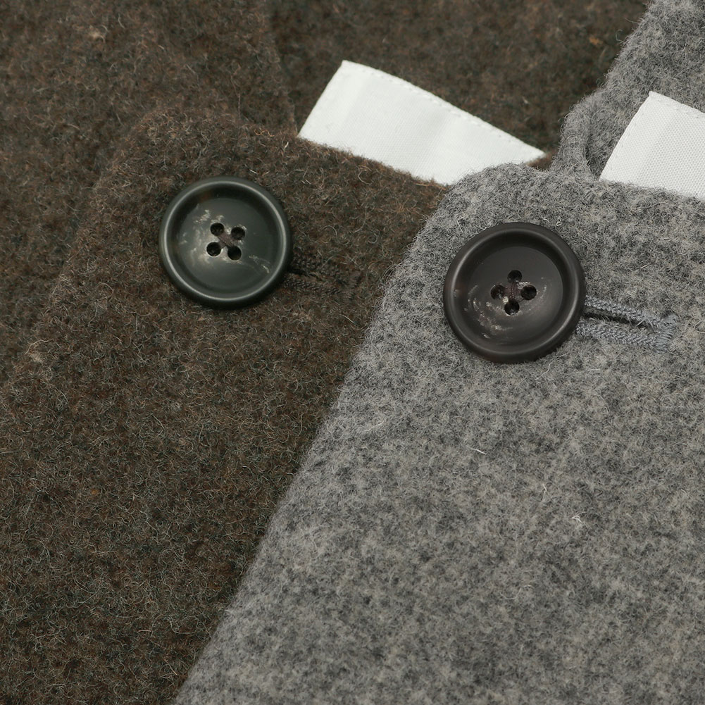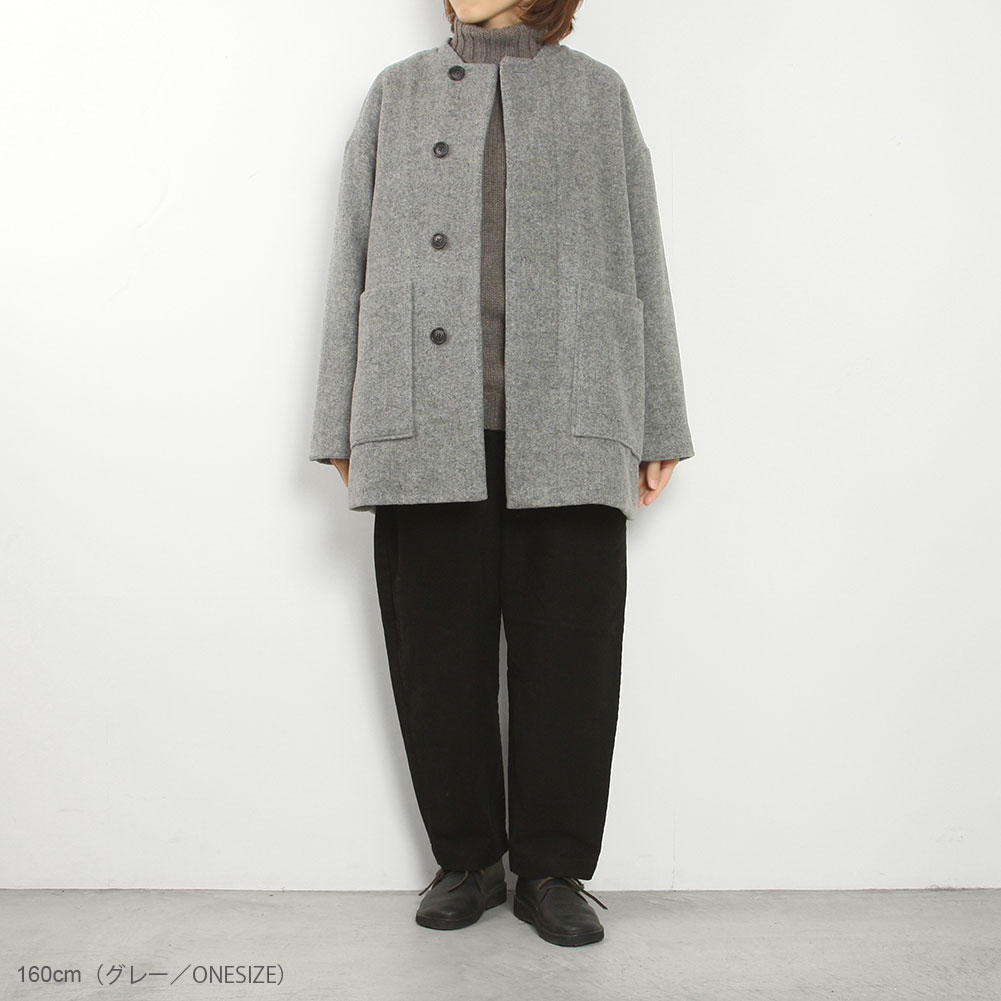 ふんわりと柔らかく、フェルトのような生地感が特徴的。ウール100%で保温性があり裏地付きで暖かいです。