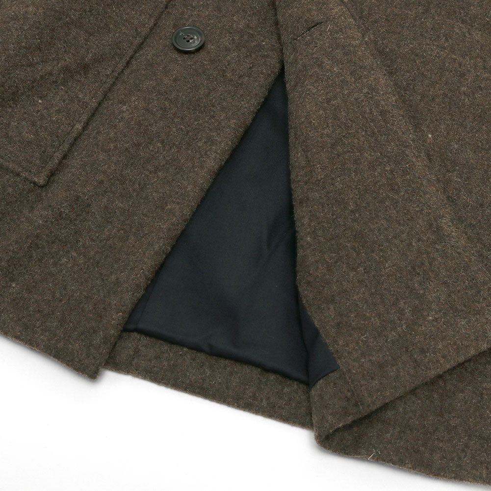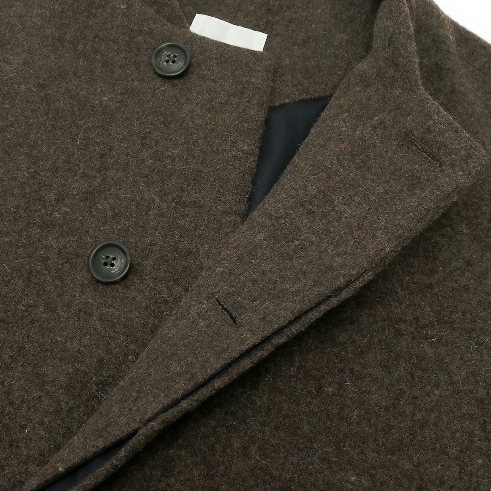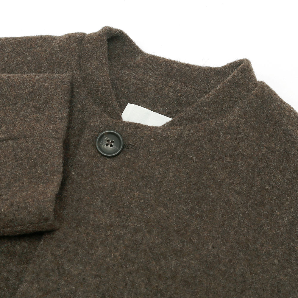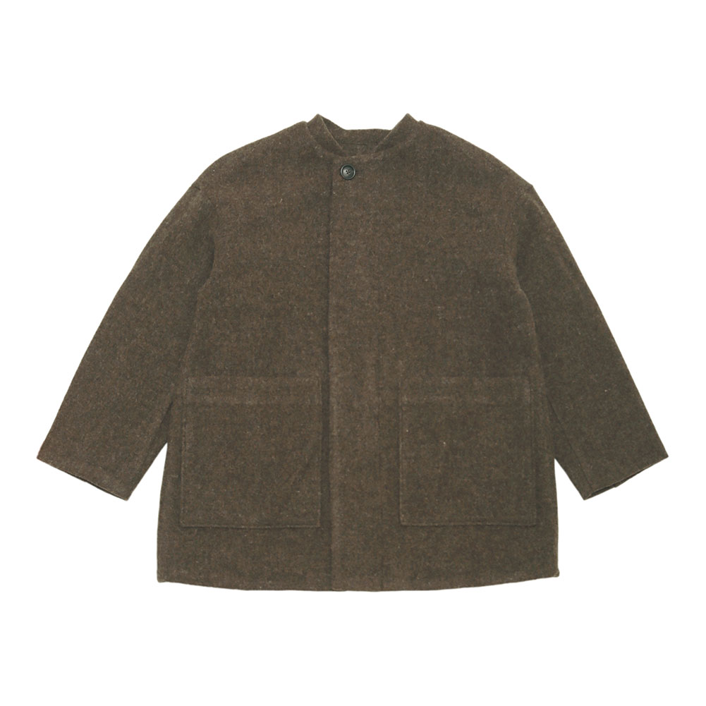 ふんわりと柔らかく、フェルトのような生地感が特徴的。ウール100%で保温性があり裏地付きで暖かいです。