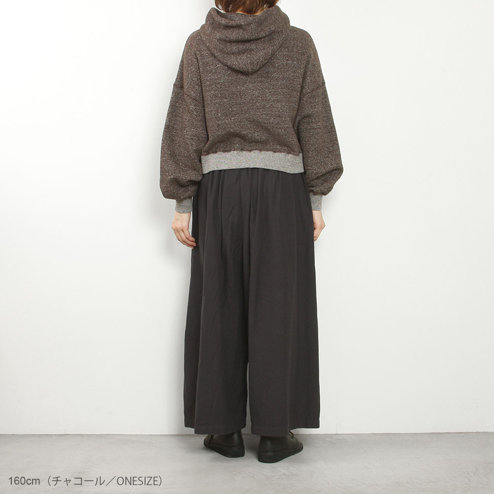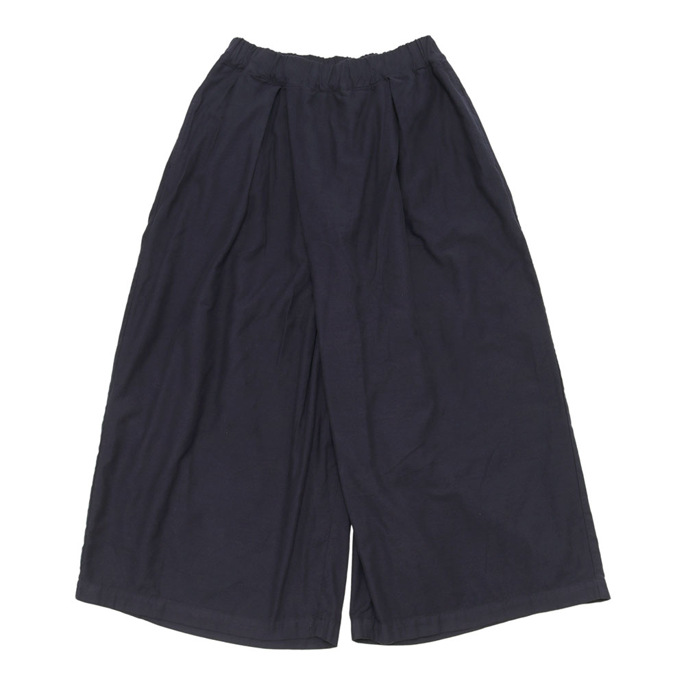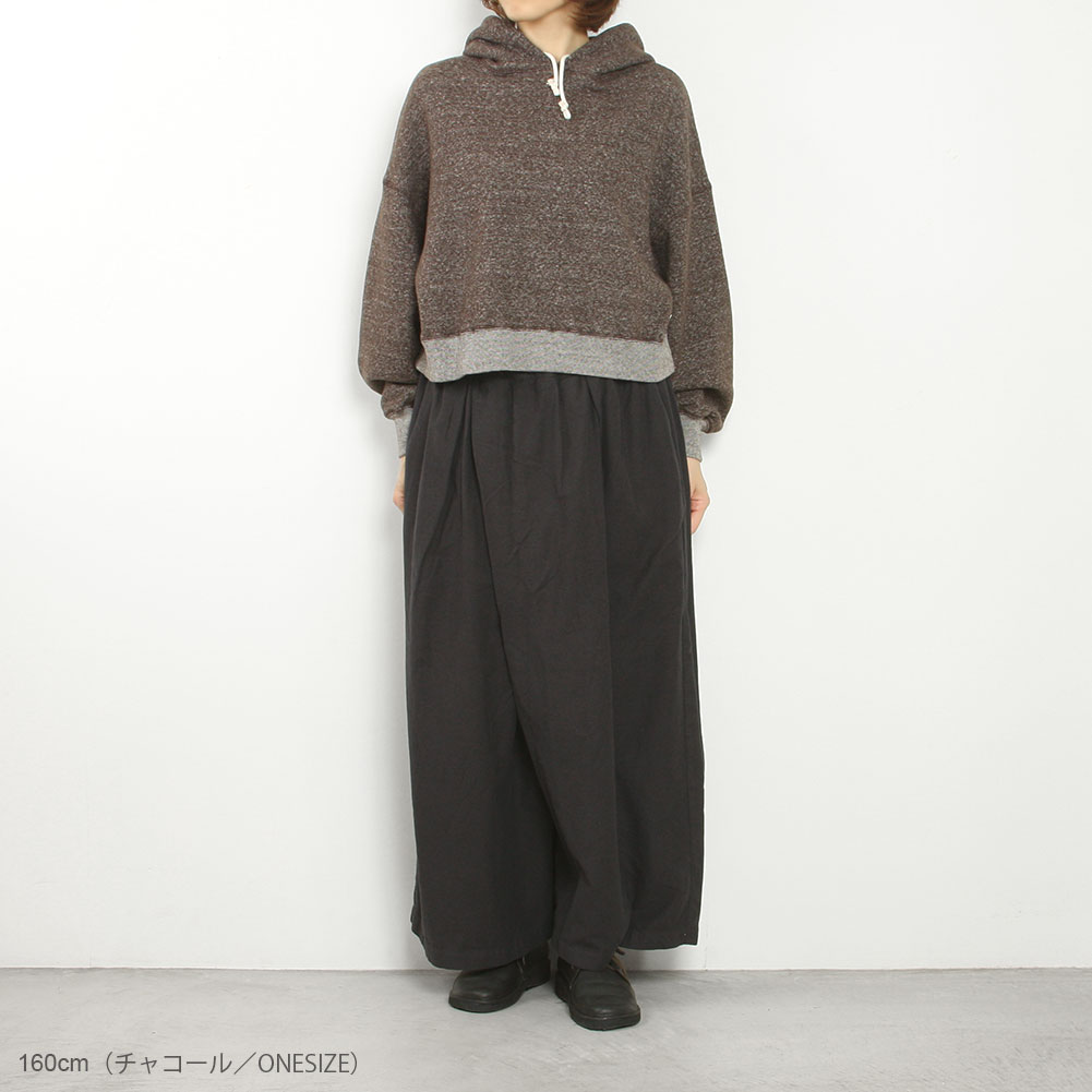 きめ細かで滑らかな微起毛が施されていて、暖かみがありながらも柔らかくしっとりとした手触りのワイドパンツ。やさしい肌触りとやわらかな風合いが特徴で、保温性に優れタイツやレギンスなどを重ねて温かくこれからの季節にぴったりです。