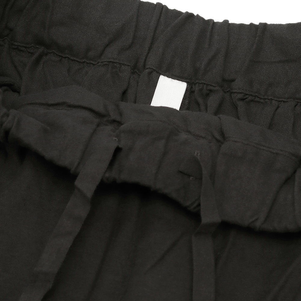 ウエストはゴムとひもで調節できます。前はタックが入ってるのでお腹周りも隠してくれます。コットン100%なのでお手入れも簡単です。
