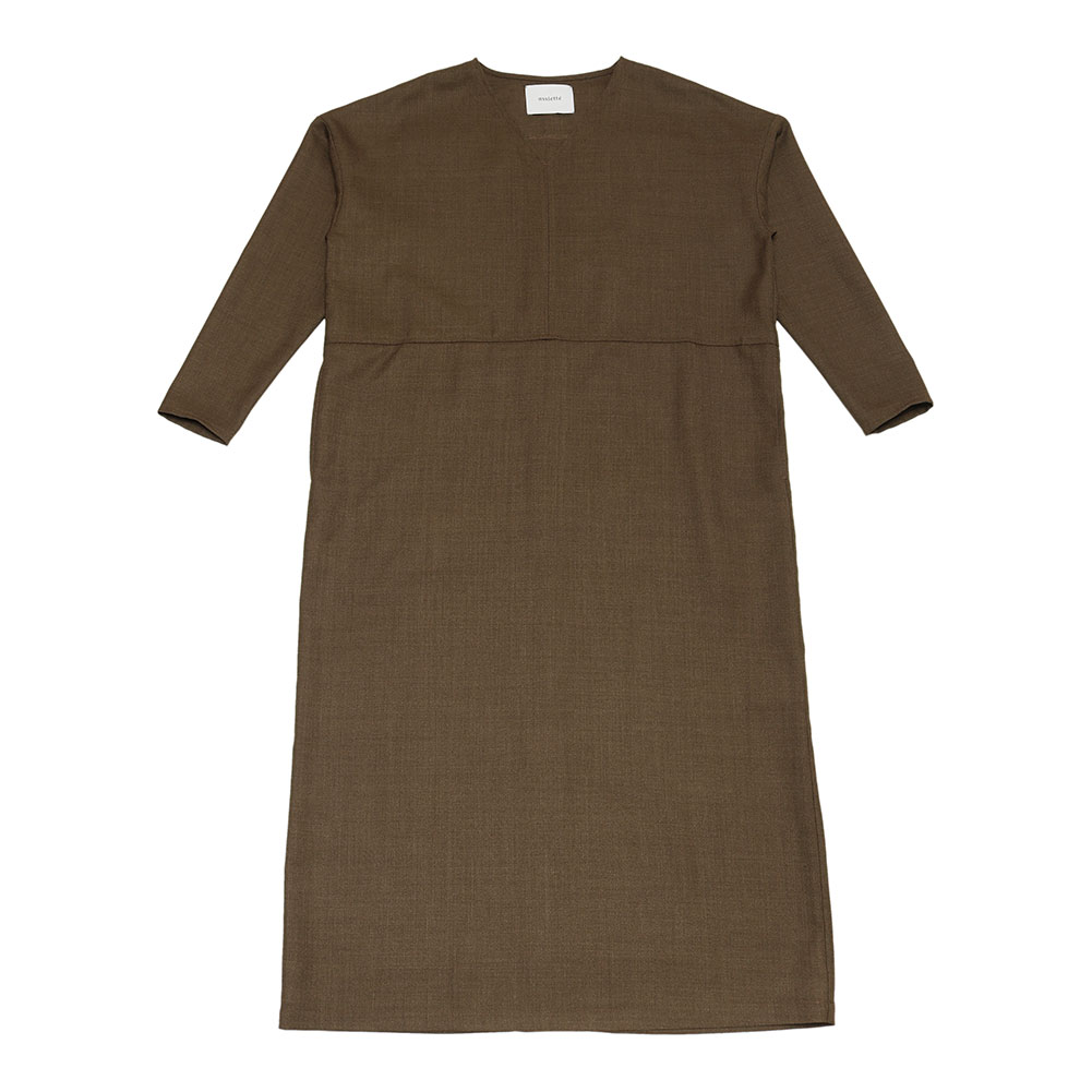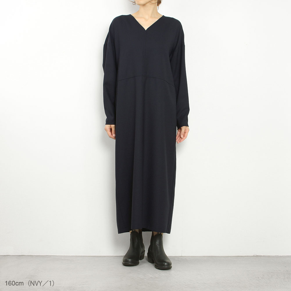 ドロップショルダーで少しゆるめのサイズ感が雰囲気のあるロングサックワンピース。