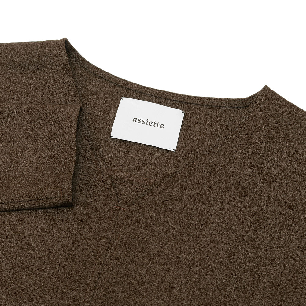 すっきり開いたネックラインは一枚でさらっと着てもよし、インにタートルなどをレイヤードしてもきれいです。
