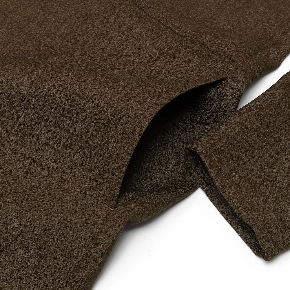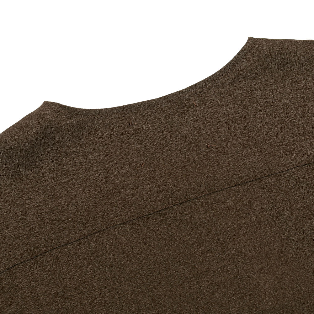 ドライタッチでシワになりにくいウールポリエステルの混紡糸を使用したジョーゼット素材、細かなシボ感が特徴で軽い着心地です。