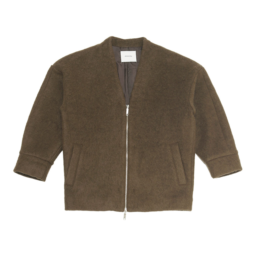 カーディガン感覚で着られるブルゾンアウター。