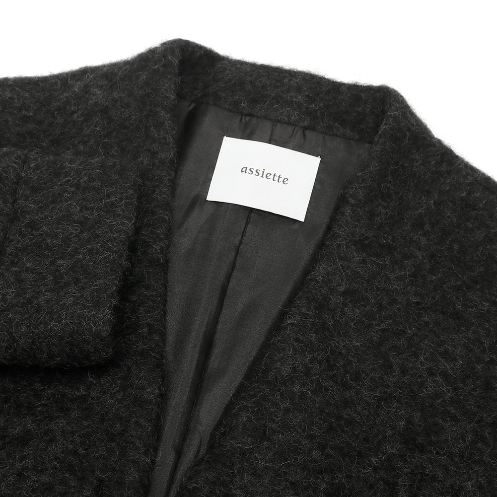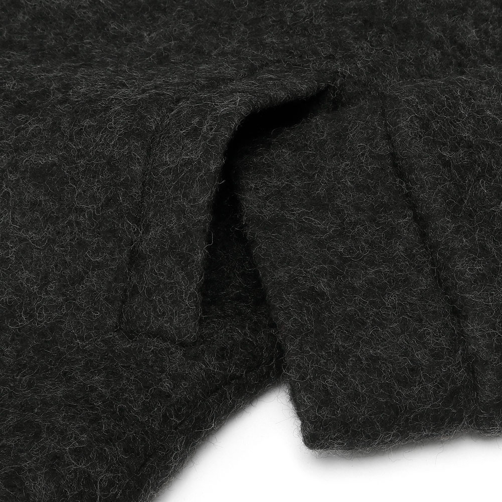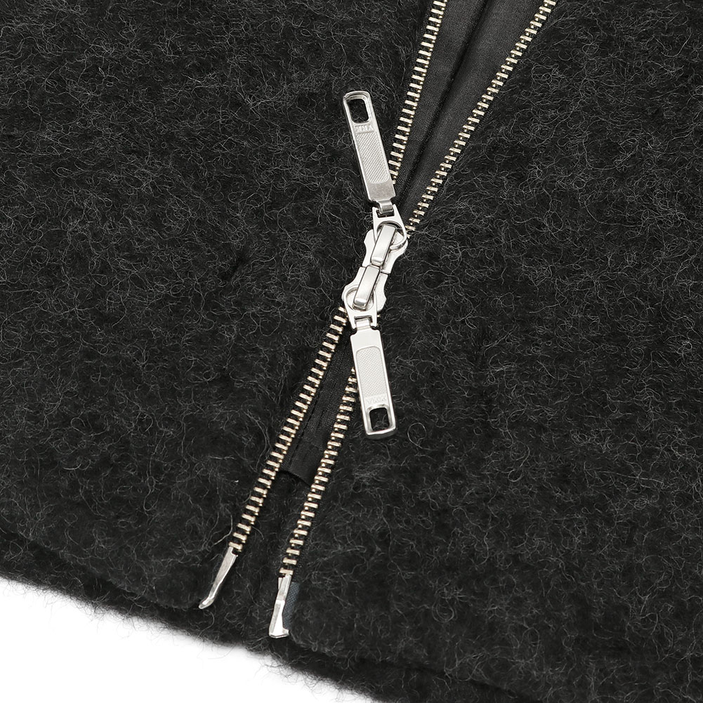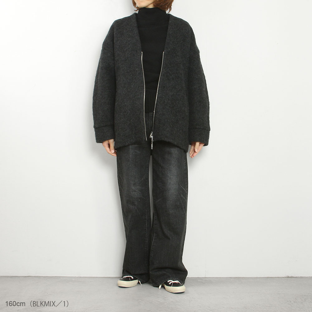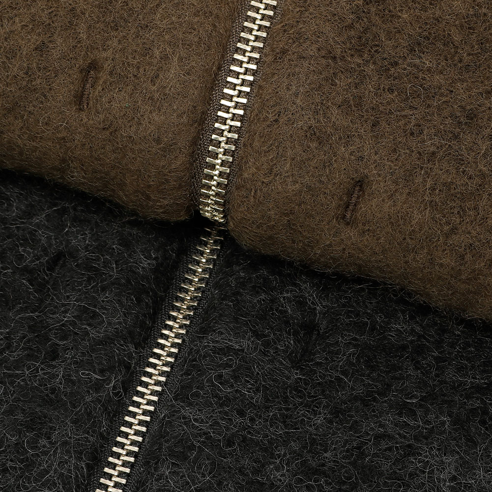 ファスナーは上下から開く2way仕様、ヒップが隠れるくらいの着丈で暖かく、ボトムと合わせやすいコクーンシルエットもポイント。