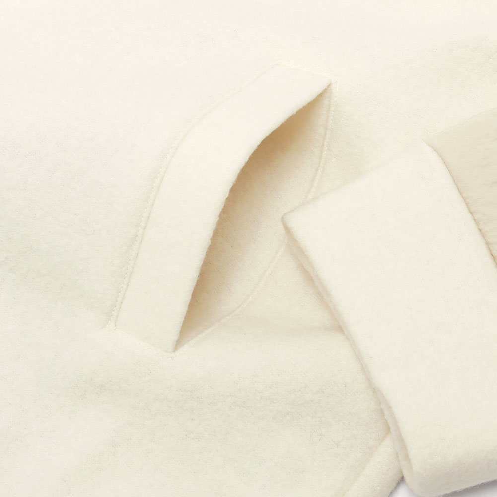圧縮ウールの目の詰まった生地感で軽くて暖かく、ゆったりとした裾にかけてAラインになったシルエットです。