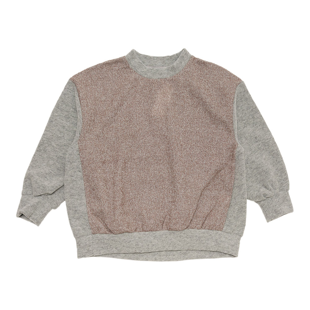 前身頃をツイード生地で切替えたデザインが目を惹き、ゆったりとしたサイジングに、少し前後差のあるシルエットで小柄な方にもバランス良さそうです。少しボリュームのある袖のデザインもポイントになり、それぞれの配色が可愛いプルオーバーです。