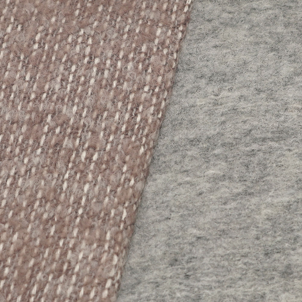 ニットのような表面感と、カットソーの扱いやすさを併せ持った生地です。ウール混で暖かく、軽い着心地が特徴。気温の低くなるこれからの季節にぴったりです。