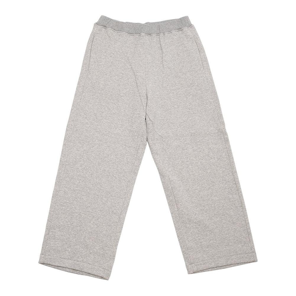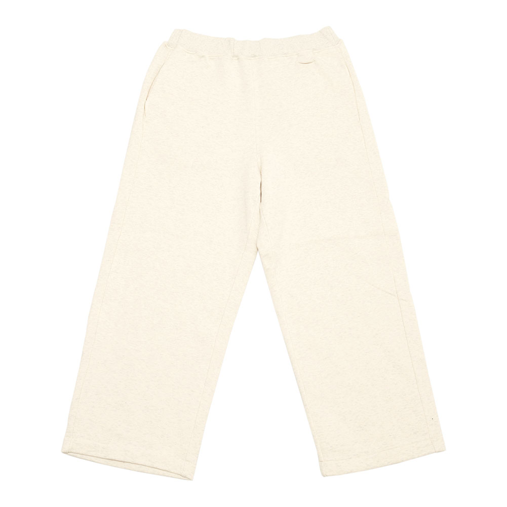 ヒップとワタリにゆとりがあり、裾にかけてすとんと落ちる太めのシルエットのワイドパンツ。ウエストの別地使いもポイントになり、ゴムとひもで調節出来ます。