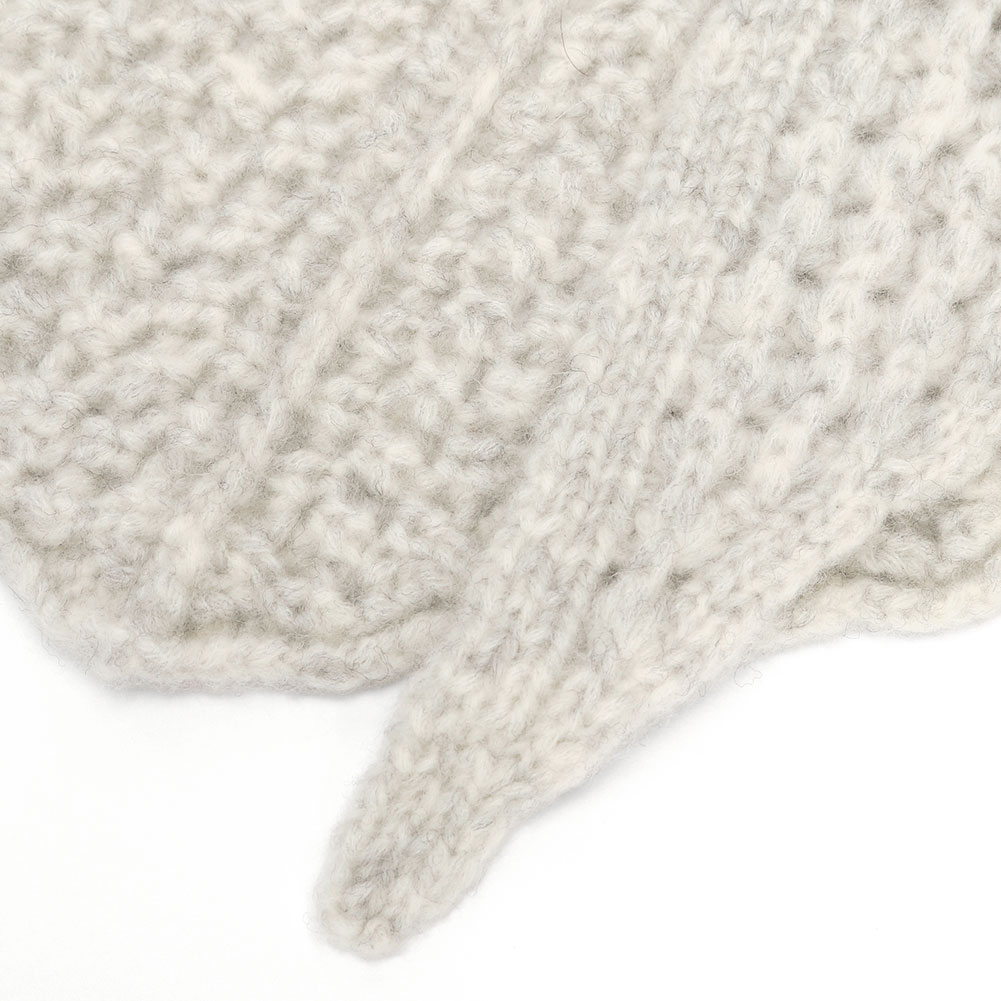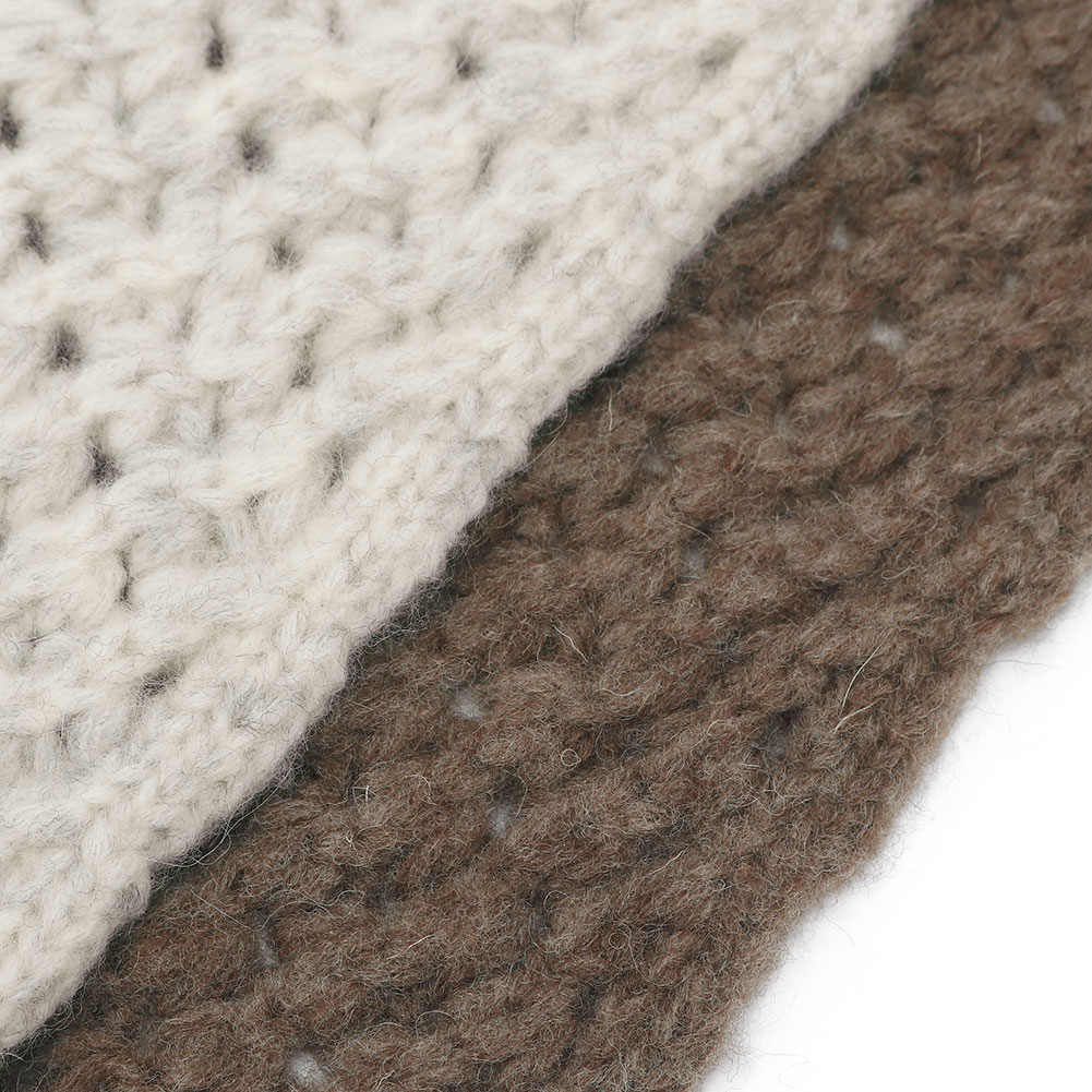 非常に細くやわらかな羊毛を使用し、凹凸のあるざっくりとした表面感が可愛いワッフル編みです。