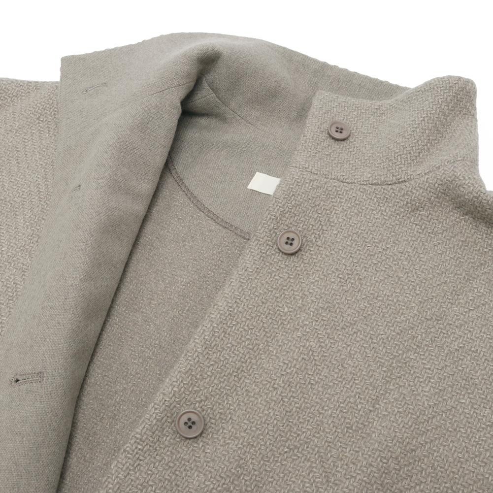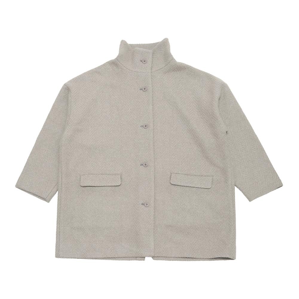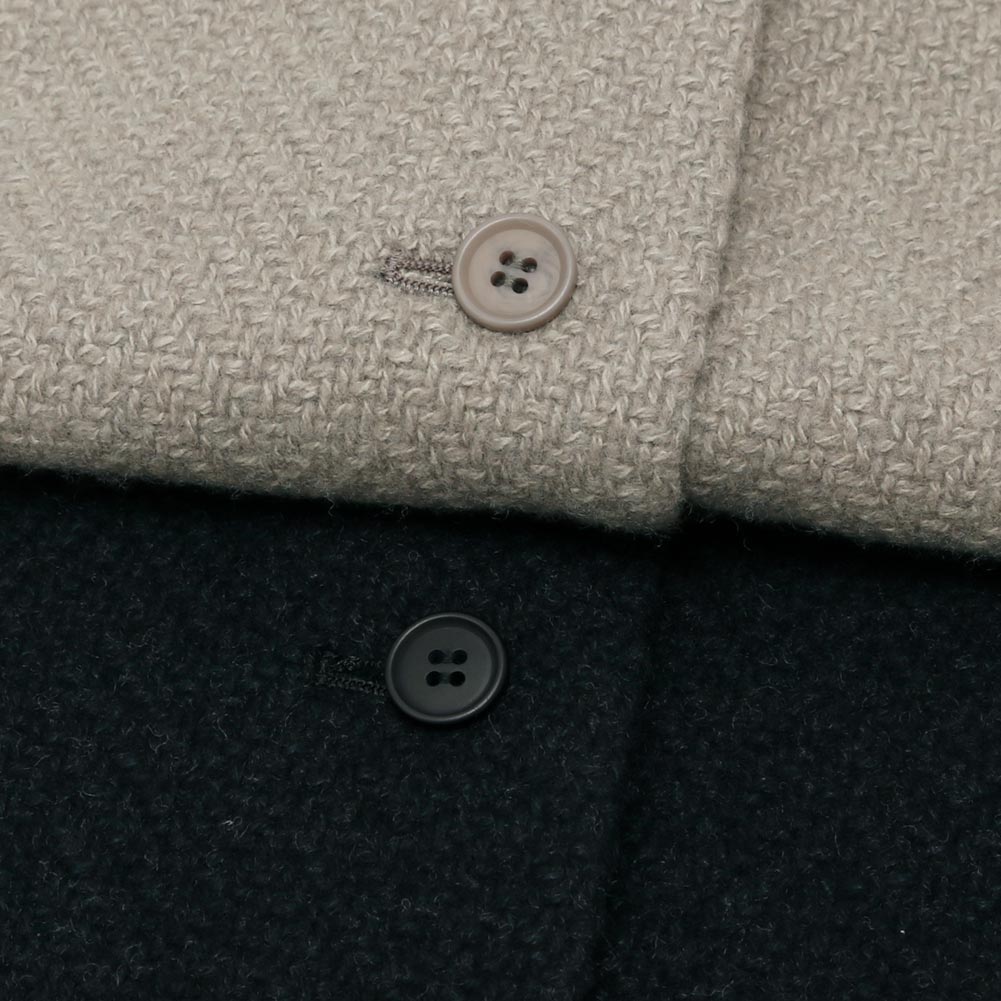 定番のプレスウールシリーズから残る端材を粉砕して、新たな糸に生まれ変わったrenew-wool。これまでニットでの展開でしたが今季からアウターシリーズが新たに加わりました。renew-woolの太番手の織り糸とシルクの糸が織りなす独特の風合いは見た目にもあたたか。ゆとりのある腕周りは厚手になるこれからの季節に羽織やすく、ショート丈が軽快な印象に。スタンドカラーが特徴的で首元を優しく温めてくれます。