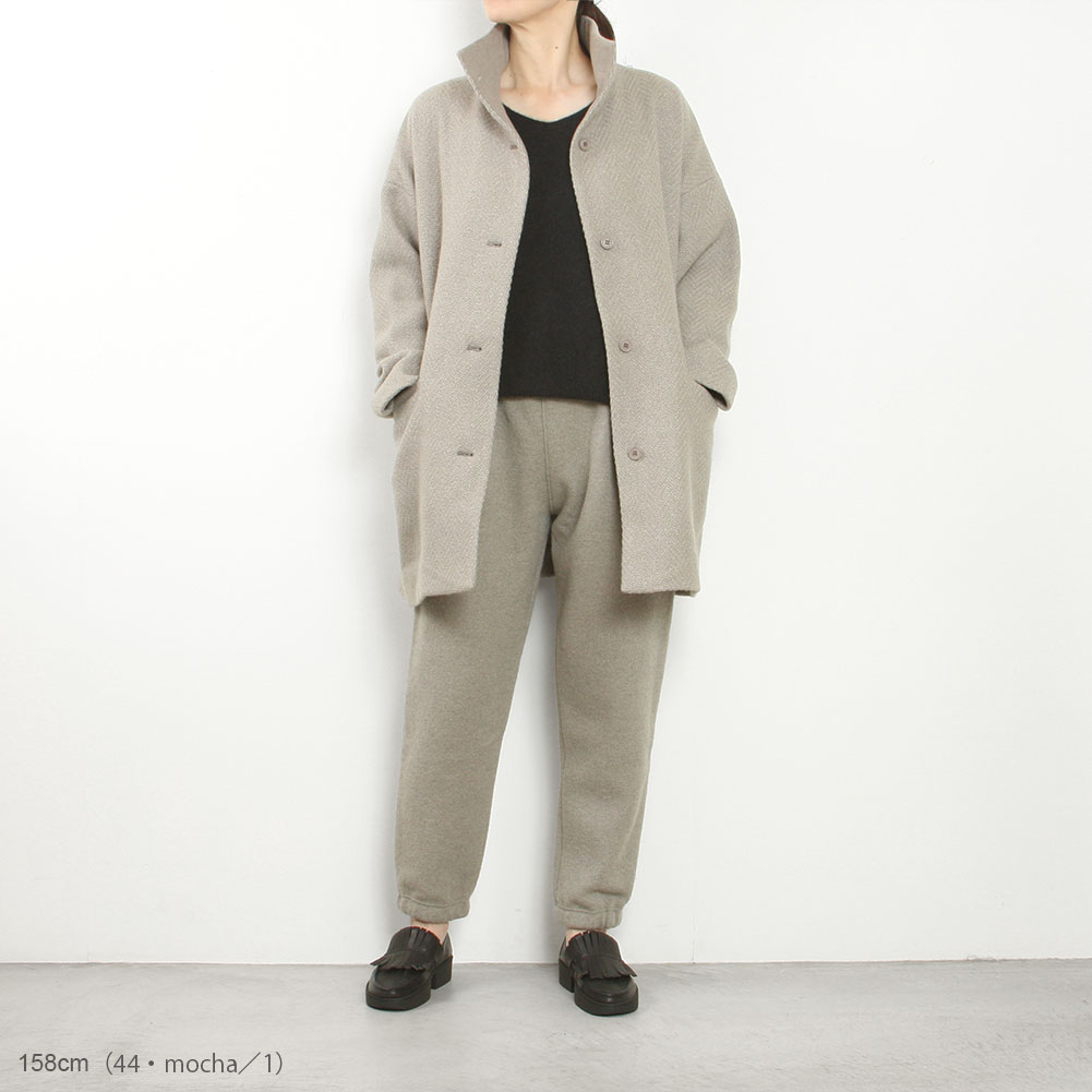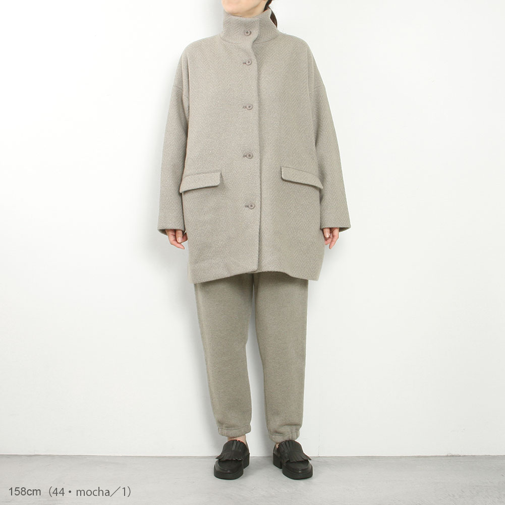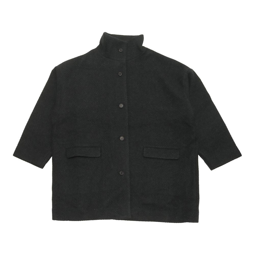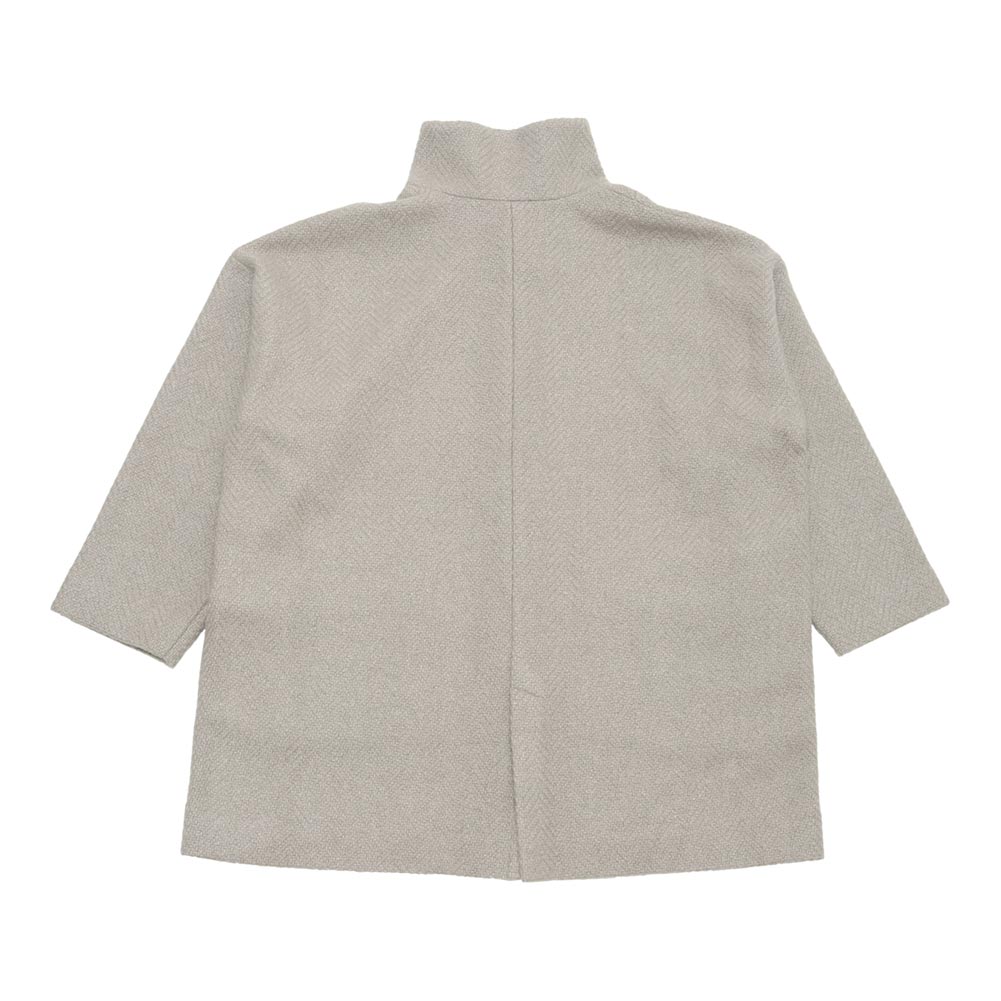 定番のプレスウールシリーズから残る端材を粉砕して、新たな糸に生まれ変わったrenew-wool。これまでニットでの展開でしたが今季からアウターシリーズが新たに加わりました。renew-woolの太番手の織り糸とシルクの糸が織りなす独特の風合いは見た目にもあたたか。ゆとりのある腕周りは厚手になるこれからの季節に羽織やすく、ショート丈が軽快な印象に。スタンドカラーが特徴的で首元を優しく温めてくれます。