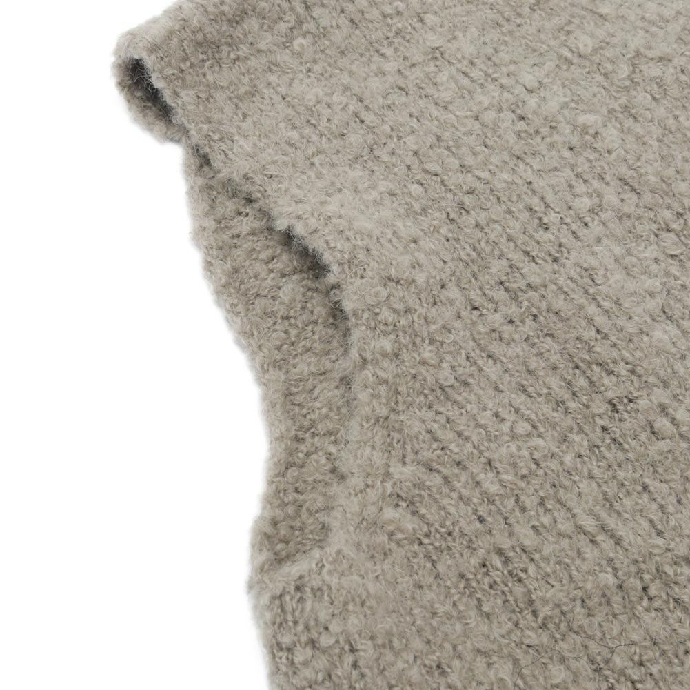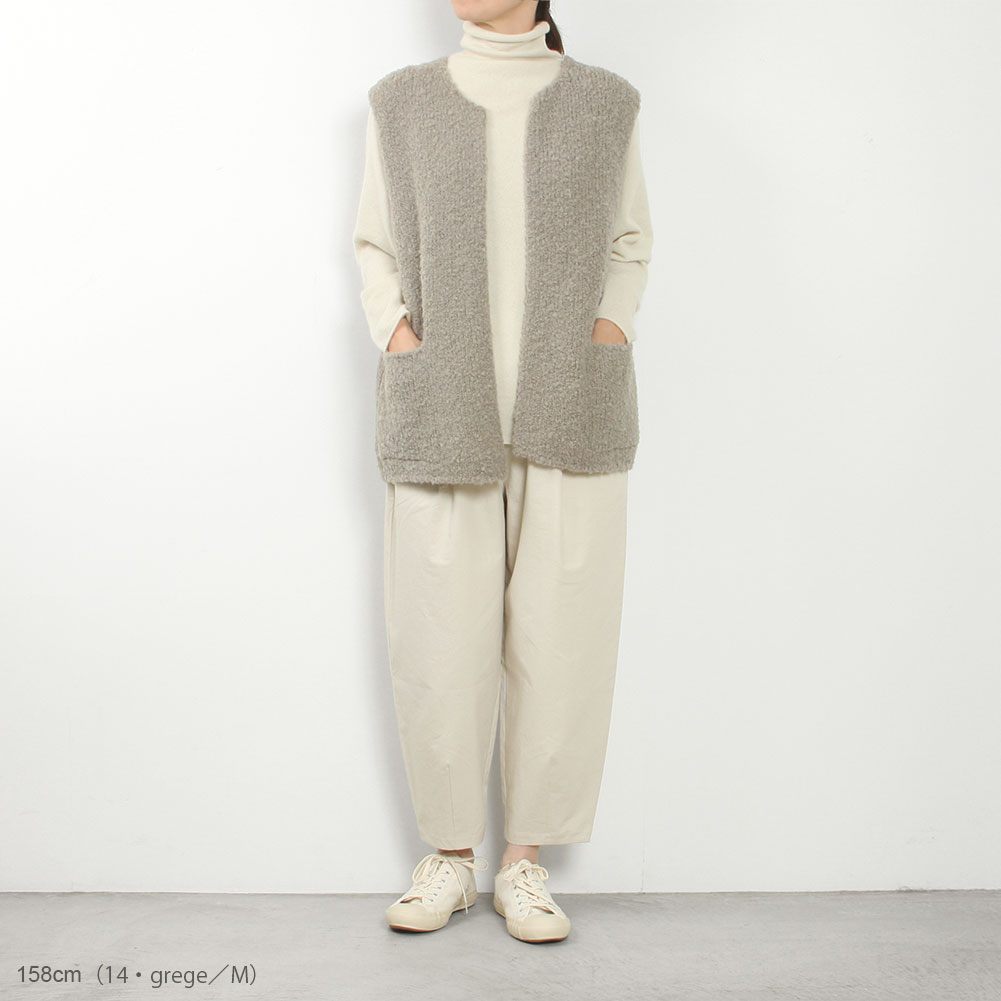 アルパカとウールをブレンドした、もこもこした風合いが特徴のベスト。ふっくらしていてとても軽い着心地です。さっと気軽に羽織れてあたたかいベストはこれからの季節の必需品。重ね着が愉しめる今だからこそお選びいただきたいアイテムです。
