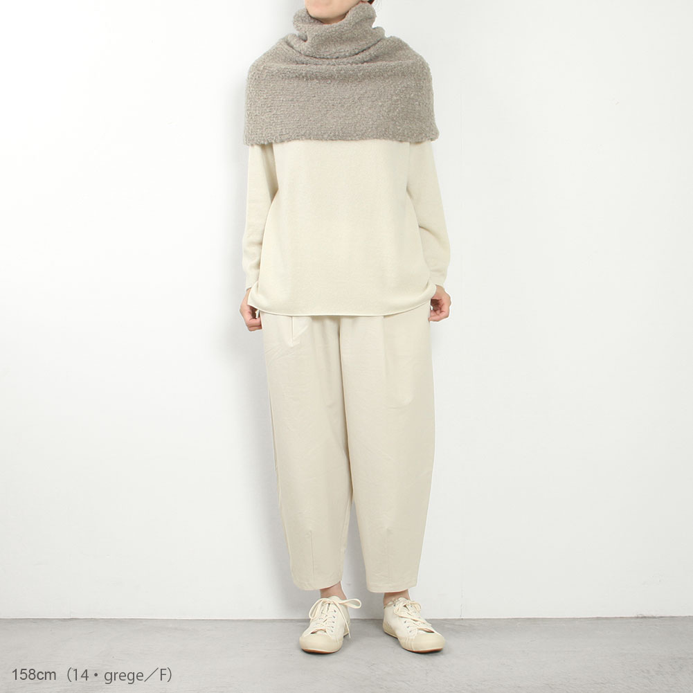 アルパカとウールをブレンドした、もこもこした風合いが特徴のスヌード。ふっくらしていてとても軽い付け心地です。ボリュームのある素材感が着こなしのアクセントにもなります。首から肩まで包み込むスヌードは寒い季節の必需品。ギフトにもおすすめです。