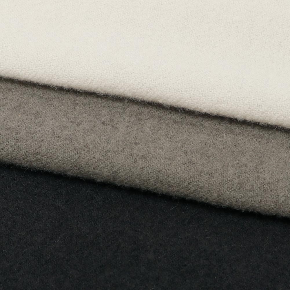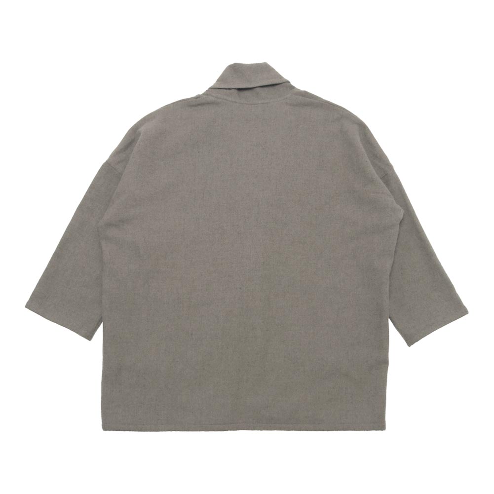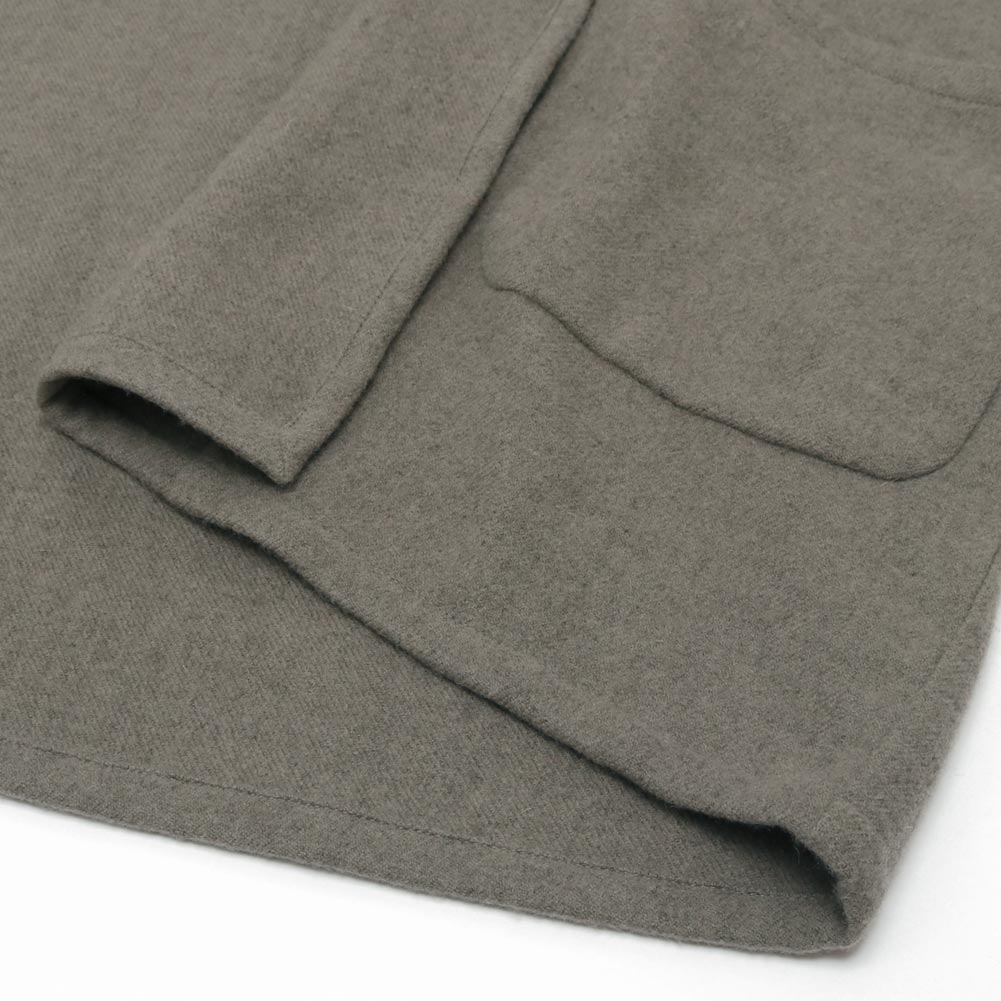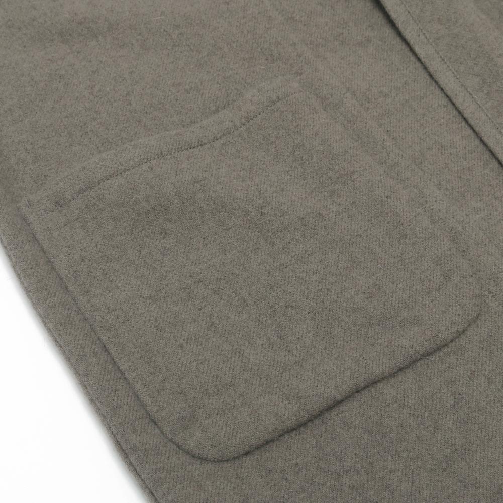 本来はニットに利用される甘撚りの糸を織り生地に使用したショートローブ。甘く撚ることで空気を含み、あたたかで軽い穿き心地に仕上がっています。腕周りにゆとりがあるのでニットなど嵩があるものと合わせてもごわつきにくいです。カーディガン感覚で気軽に羽織れるショートローブはライトアウターとして活躍します。