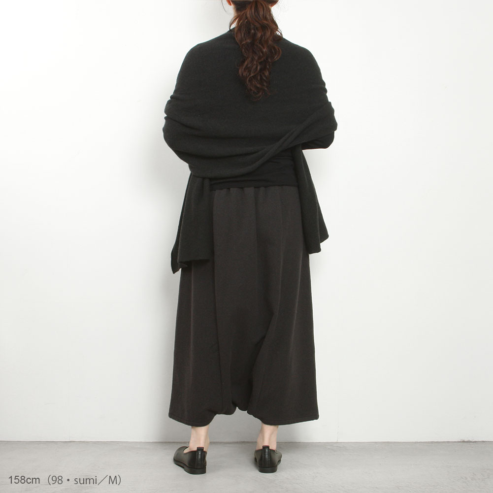 本来はニットに利用される甘撚りの糸を織り生地に使用したサルエルパンツ。甘く撚ることで空気を含み、あたたかで軽い穿き心地に仕上がっています。リラックス感のあるサルエルパンツはお出かけからお部屋着にと幅広いシーンにおすすめです。