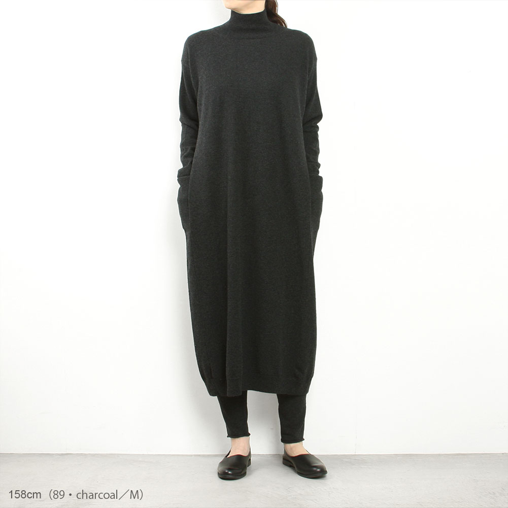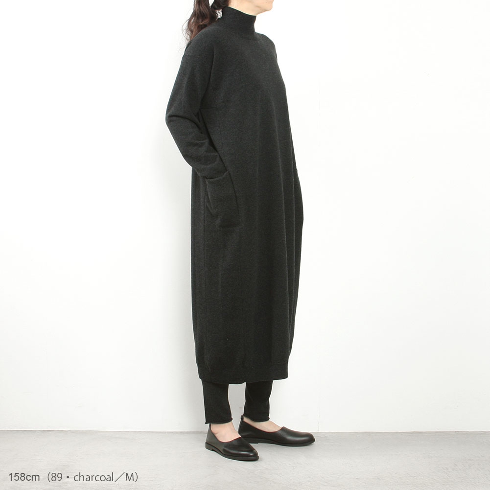 evam eva定番の人気のウールシリーズ。着用を重ねても毛羽立ちの少ないことから日常的に使いやすく、秋冬には欠かせない素材として毎シーズン展開されています。なめらかな表情と程よい厚みがあり同素材で重ねた装いもおすすめです。ニットワンピースは切り替えを利用したサイドポケットや裾のリブ編みのデザインがシンプルながらもコーディネートのアクセントになっています。