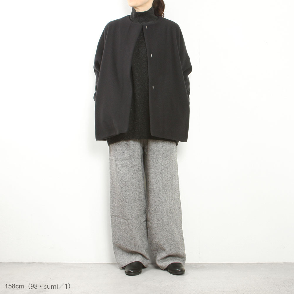 特にウール100%の生地は、フェルト状にするとより生地が柔らかく、ブランケットのようなやさしい心地となります。丸みのあるやわらかなシルエットになっています。