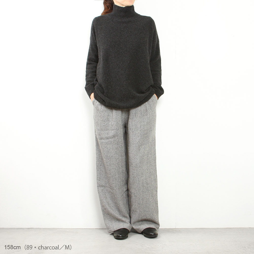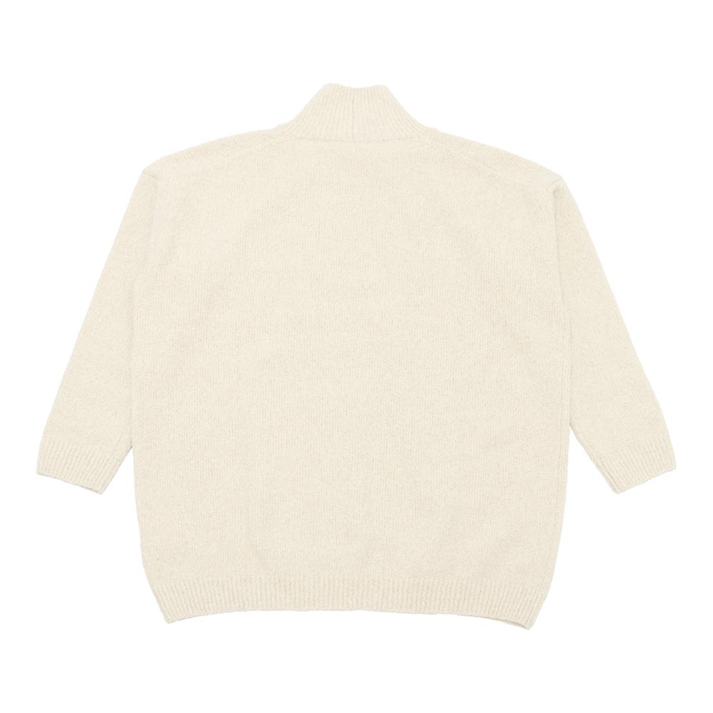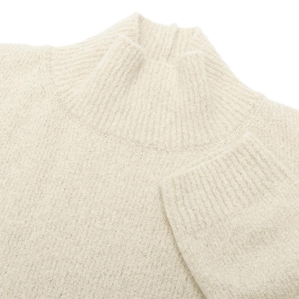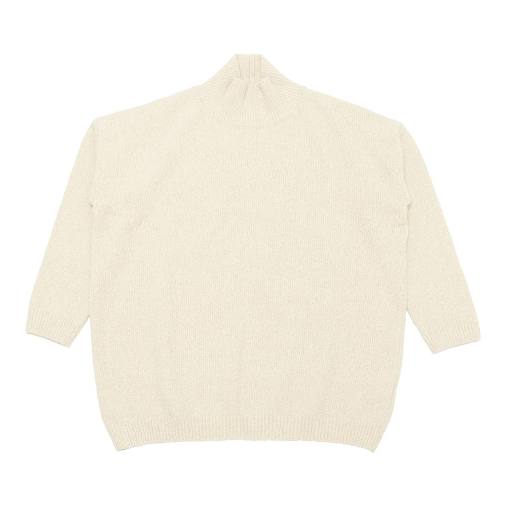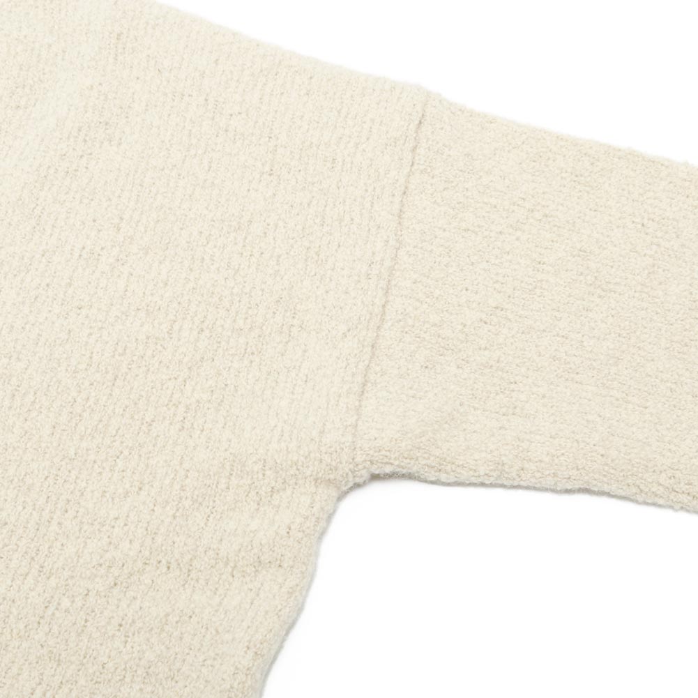 BLUE FOXの糸にさらに表情が出るようブークレ加工をほどこし、もこもことしたやわらかな肌触りのニット。軽さと暖かみがあり、ゆったりとリラックスして着ていただける1枚。締め付けすぎず、シャツなどと合わせても心地よく着ていただけるニットになっています。