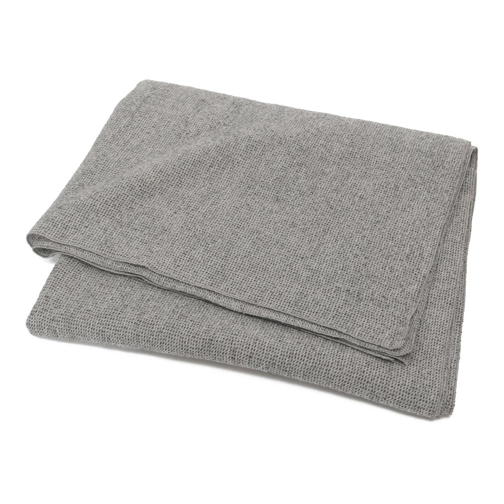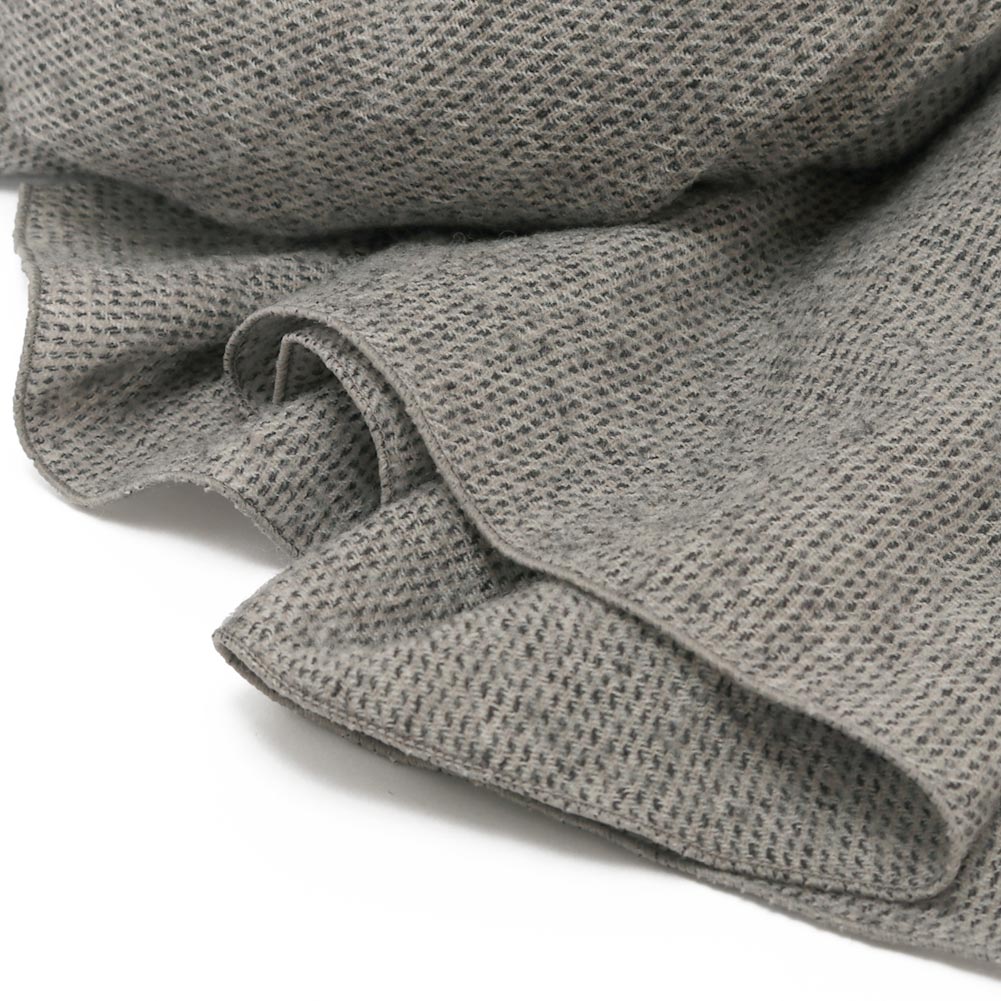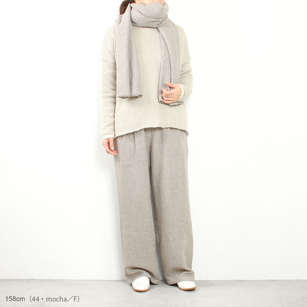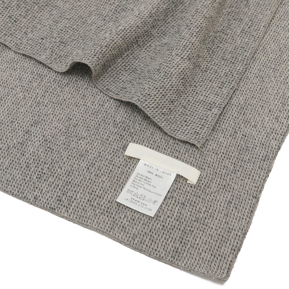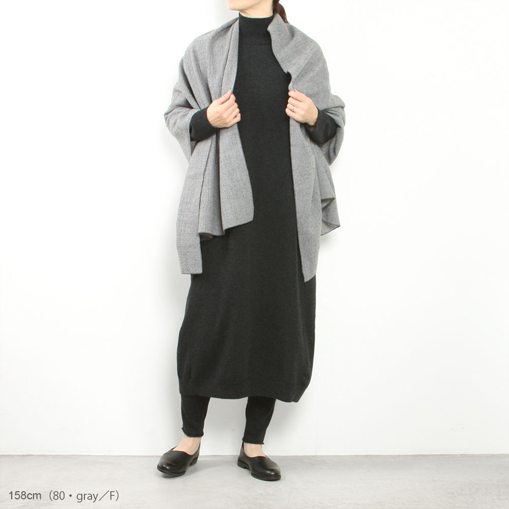 たて・よこ合わせて3色の糸からつくられる、ウールの生地。その配色と、凹凸が奥行きのある表情で細やかな柄のようにも見えることから、コーディネートのアクセントとして使っていただけそうです。普段のワードローブに添えやすそう。ストールは程よいボリューム感で季節を問わず巻きやすいです。