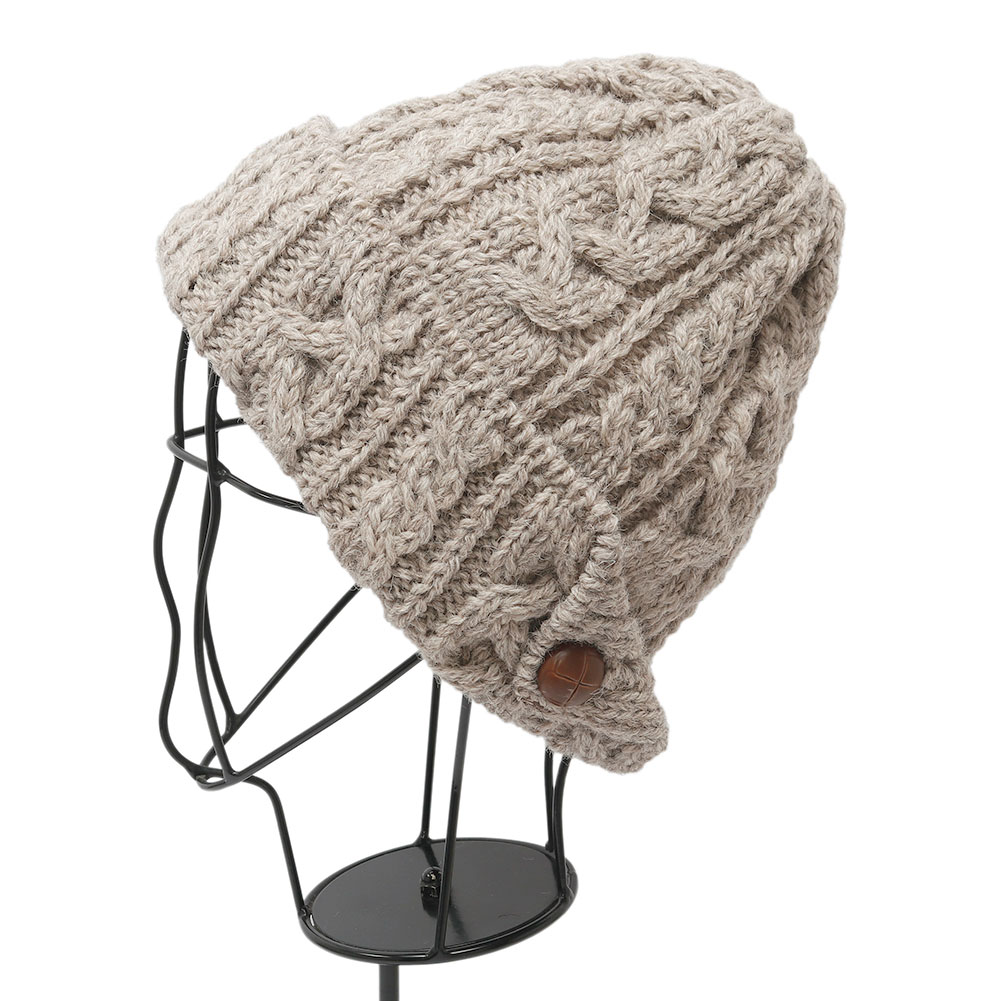 かわいらしいくるみボタンがアクセントになっていて、髪を縛ったままでも着用できる様に後ろにスリットが入ったデザインになっています。