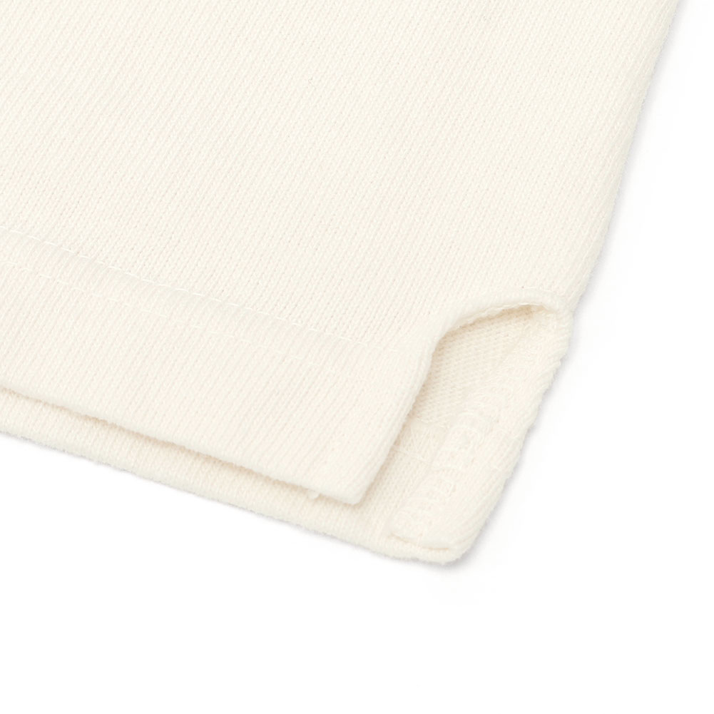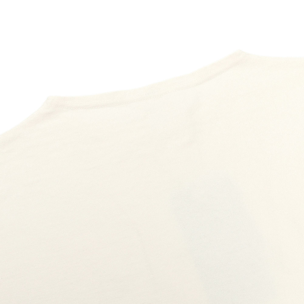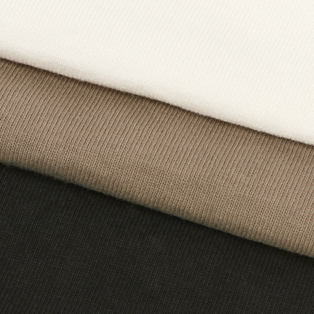 引き揃えた糸を丁寧に編み込むことで実現できる、目がしっかりと詰まったコットン天竺素材を使用。カットソーほど薄くなく、スウェットほど厚みがなくといったシーズンレスで扱える素材です。
