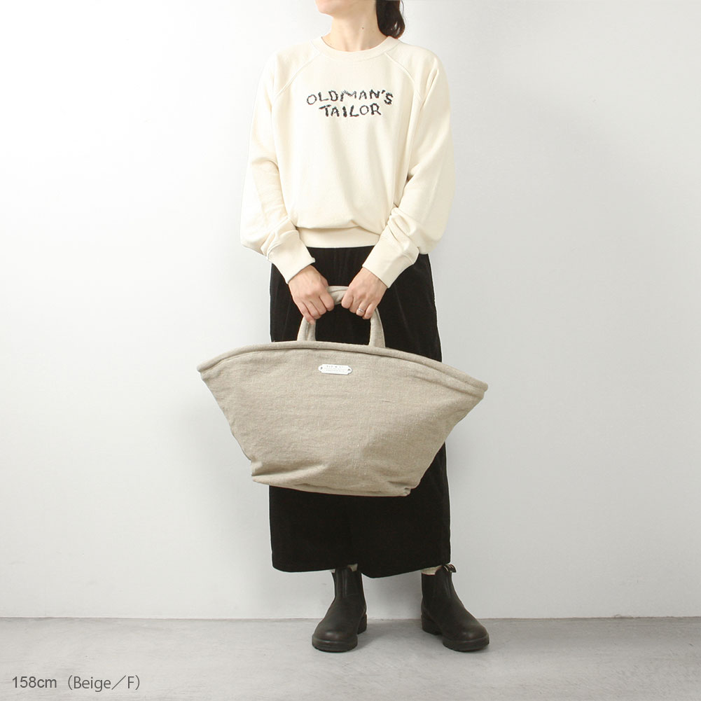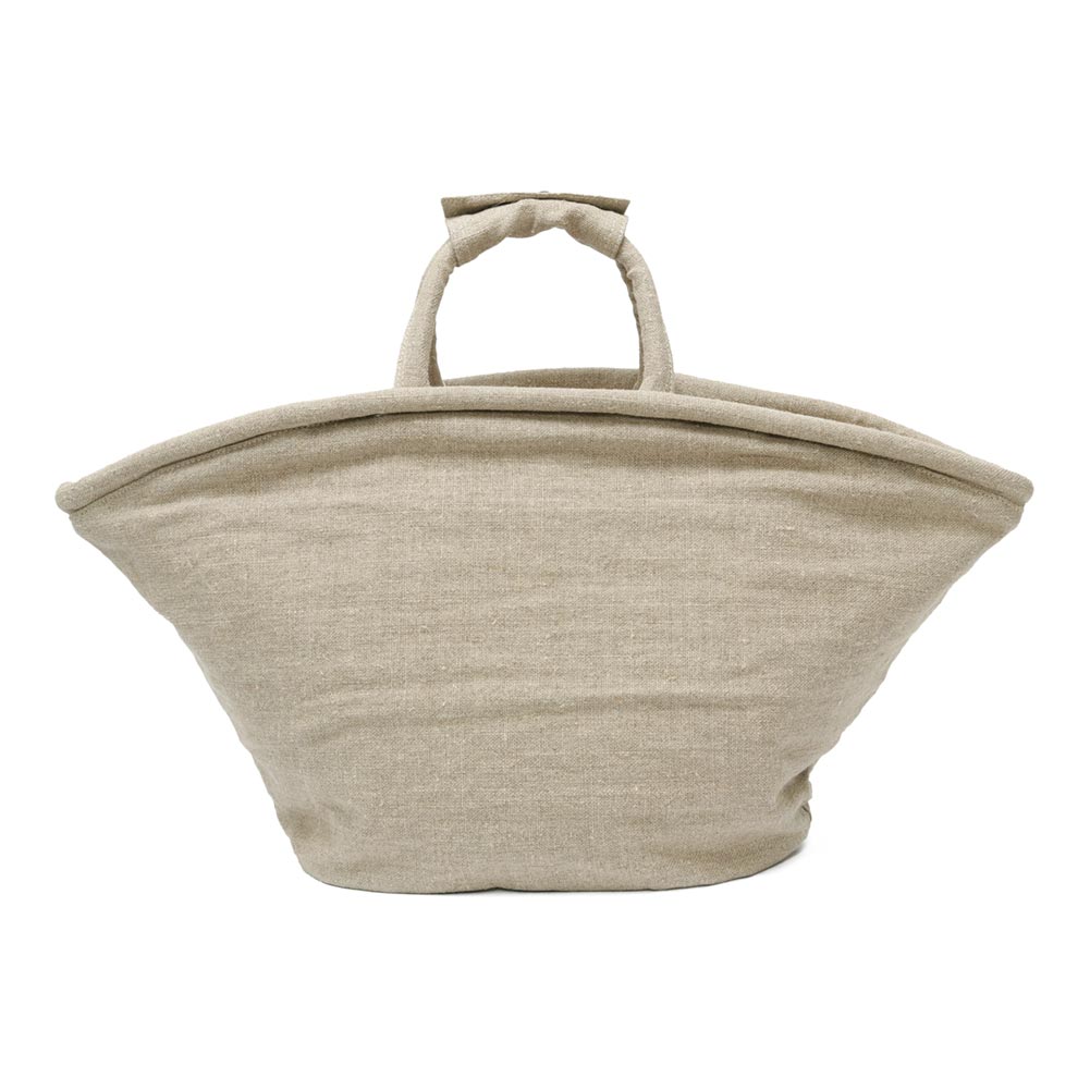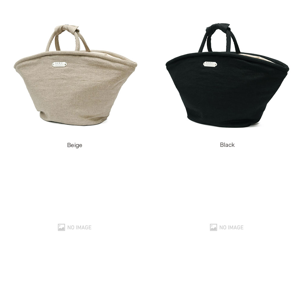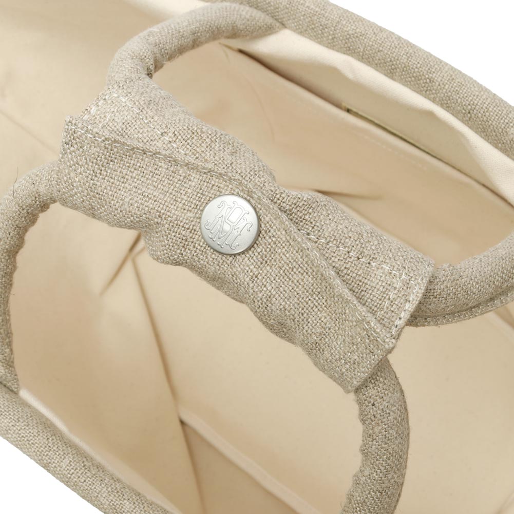リネン素材では久しぶりの登場となるマルシェバッグ。リネンならではの風合いとやわらかさが特徴です。また裏地にはハリのあるコットンを使用しているのでぱっと置いても自立します。少し大きめサイズで収納力は抜群です。インテリアの一つとしてブランケットなど入れたりしても良さそうですね。