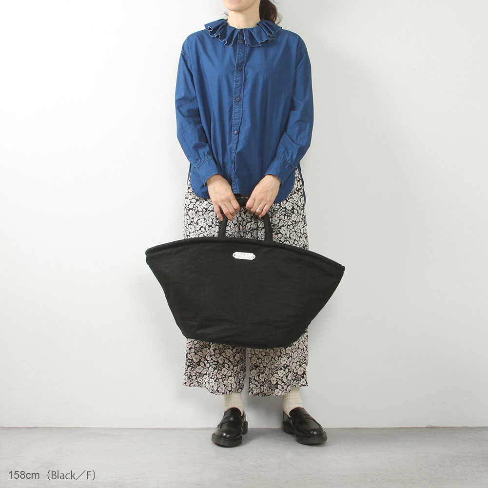 シンプルなデザインが様々な着こなしにマッチします。R&D.M.Co-のマルシェバッグならではの琺瑯のタグもアクセントに。通年使えるバッグとして重宝しそうです。
