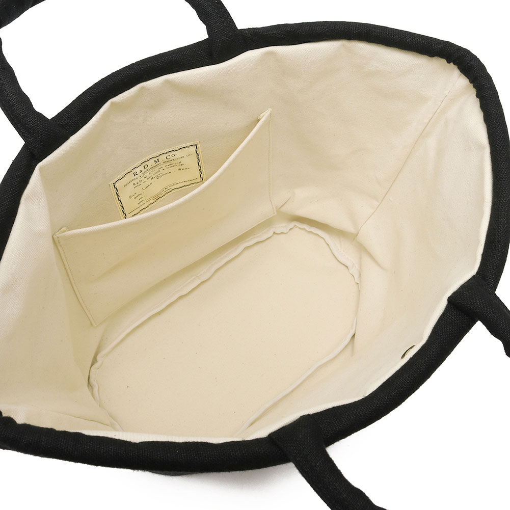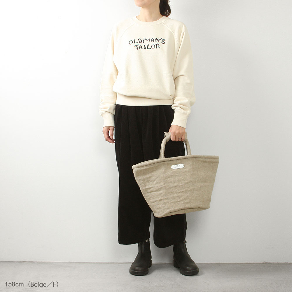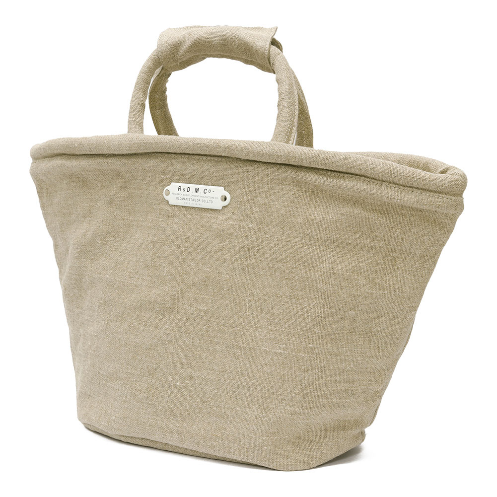 リネン素材では久しぶりの登場となるマルシェバッグ。リネンならではの風合いとやわらかさが特徴です。また裏地にはハリのあるコットンを使用しているのでぱっと置いても自立します。普段使いにちょうどいい大きさで、シンプルなデザインが様々な着こなしにマッチします。R&D.M.Co-のマルシェバッグならではの琺瑯のタグもアクセントに。通年使えるバッグとして重宝しそうです。