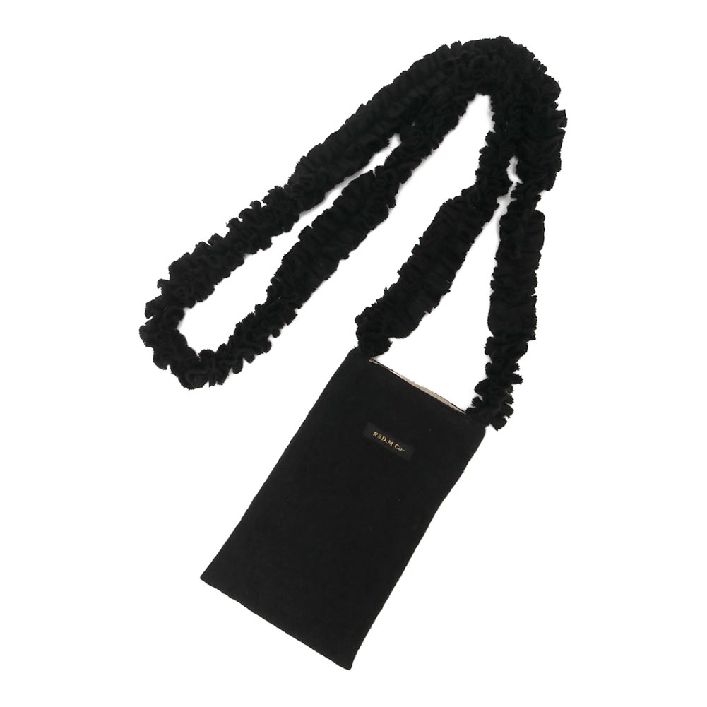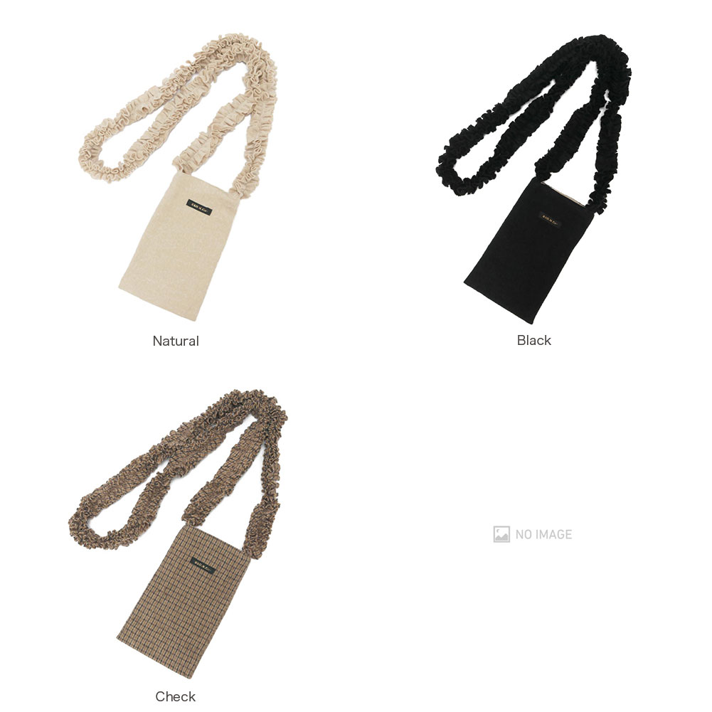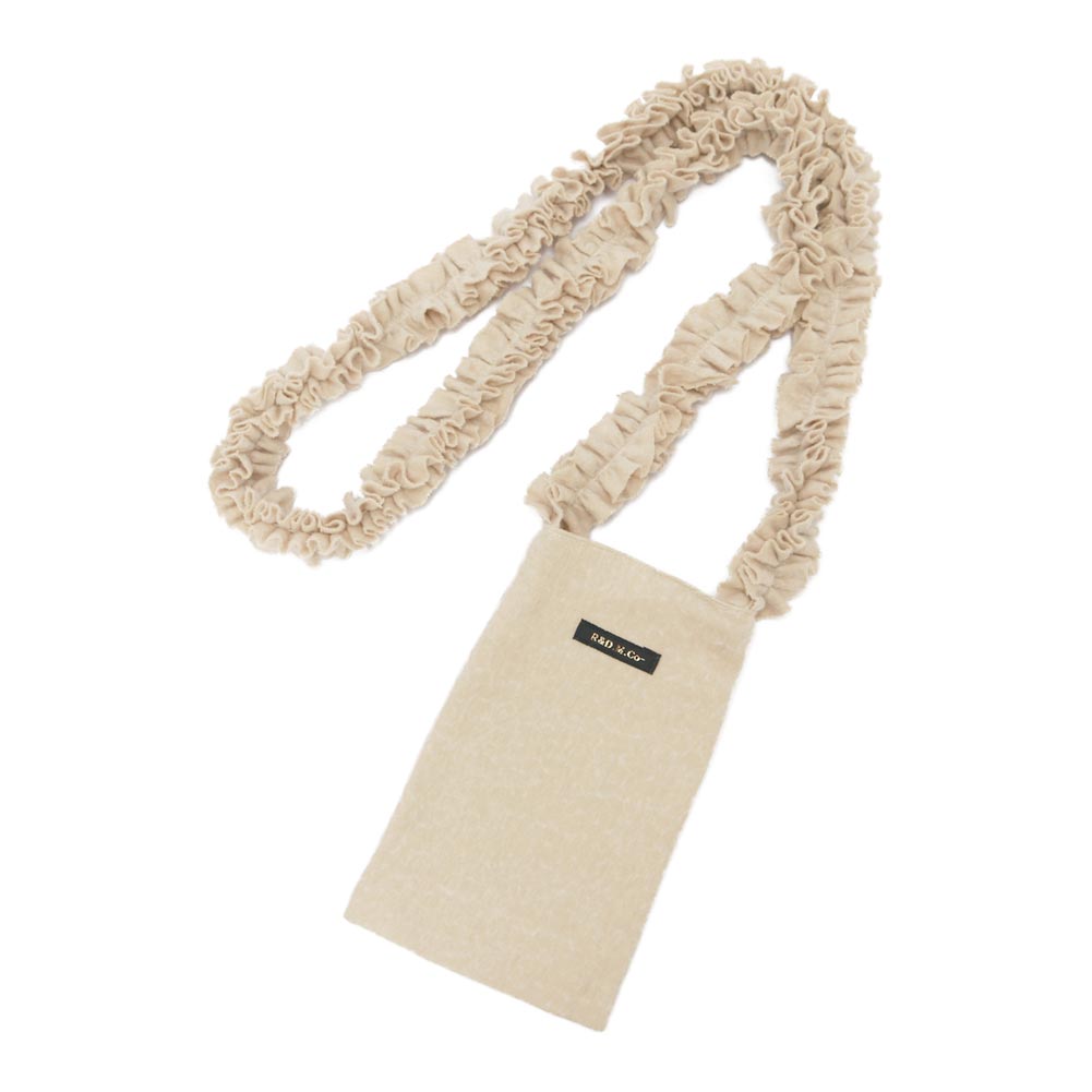 肩紐にフリルのゴムをあしらったショルダーポーチ。 素材には起毛感のあるコットンウールを使用。 コットンの肉感とウールの優しい質感を両立させたユニークな生地感です。 ミニマルながら存在感のあるデザインで、スタイリングに華をもたせてくれます。