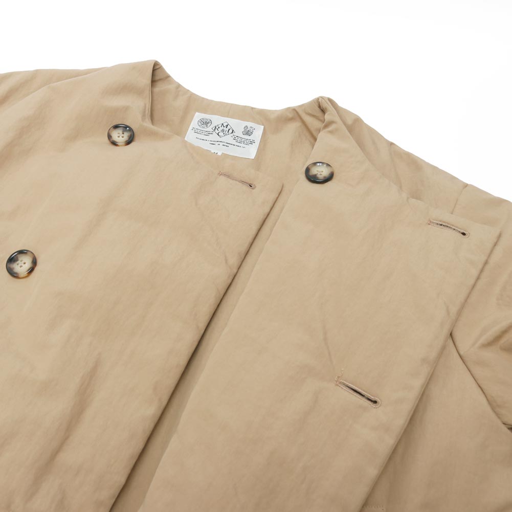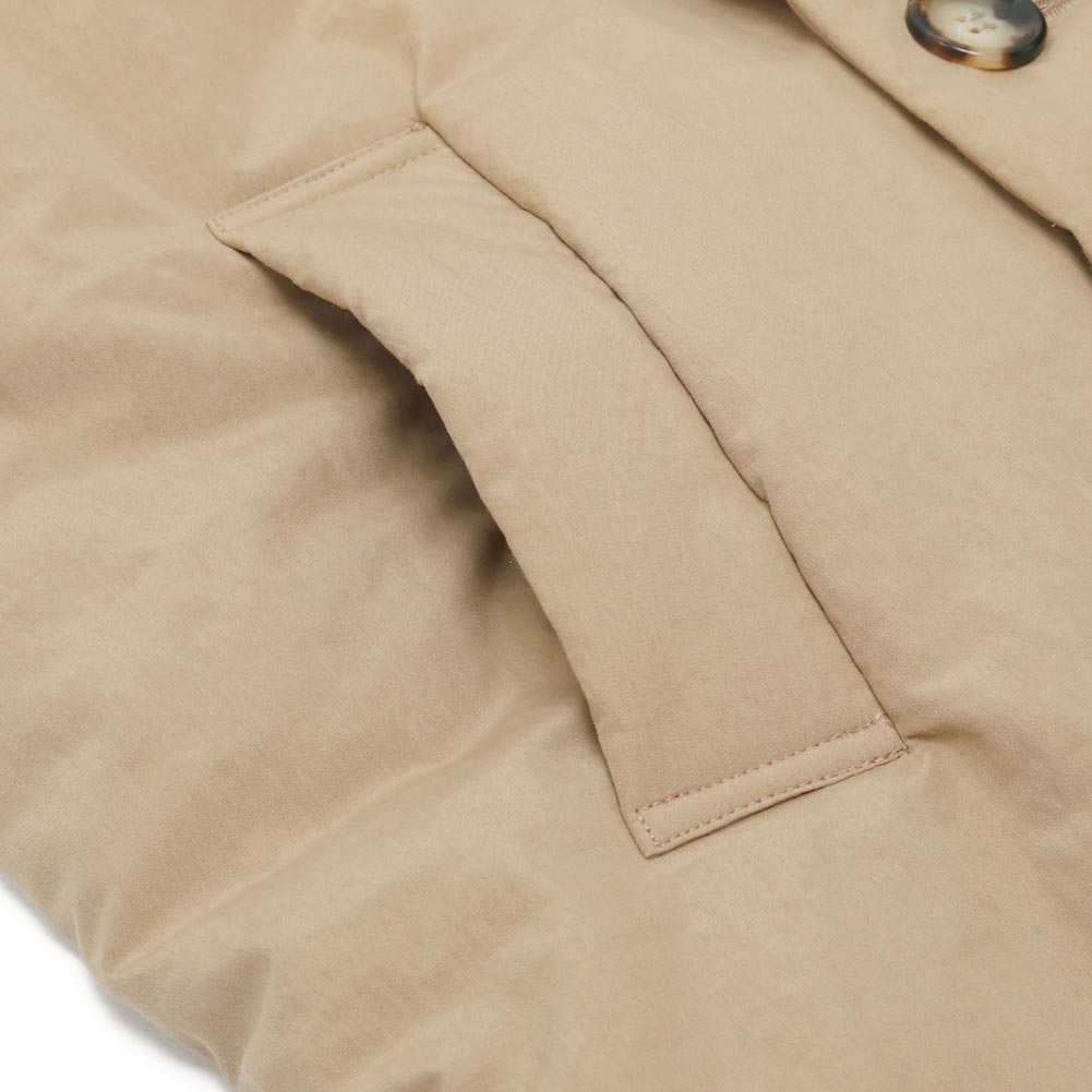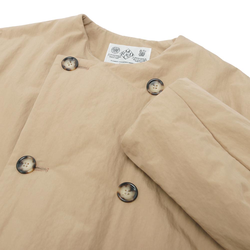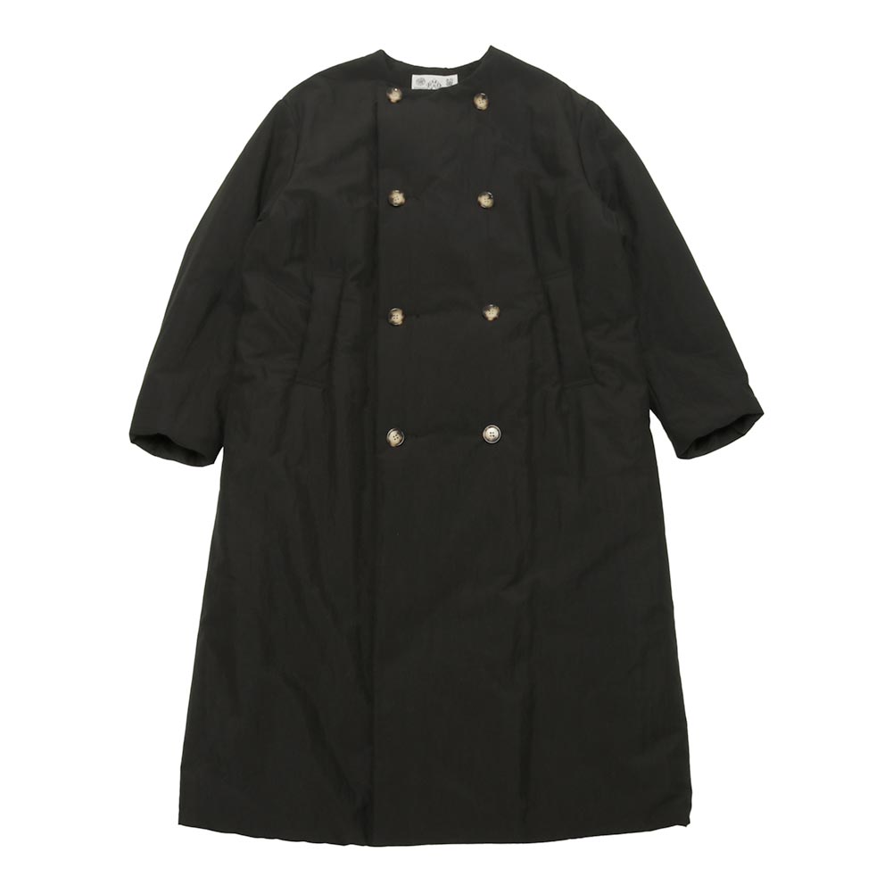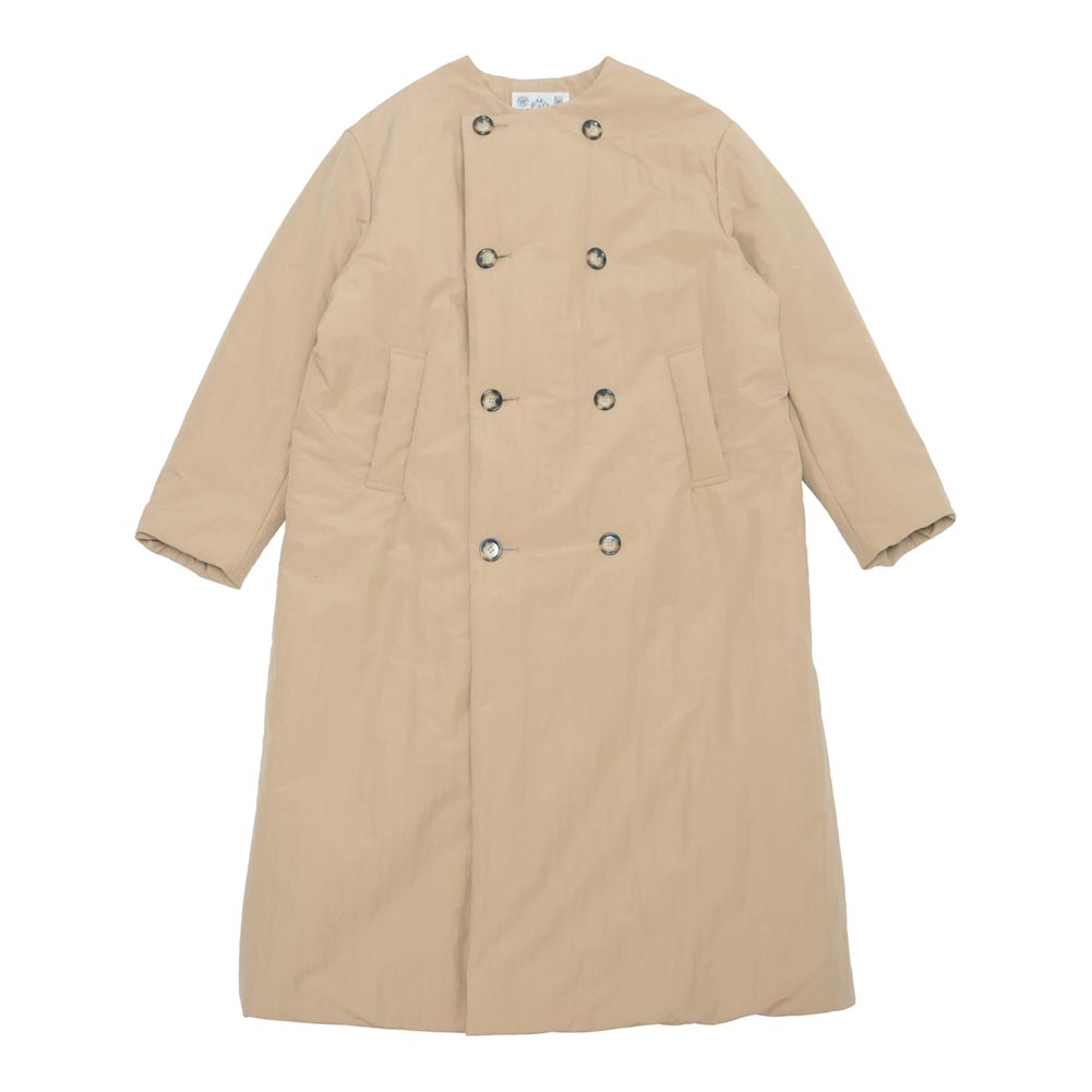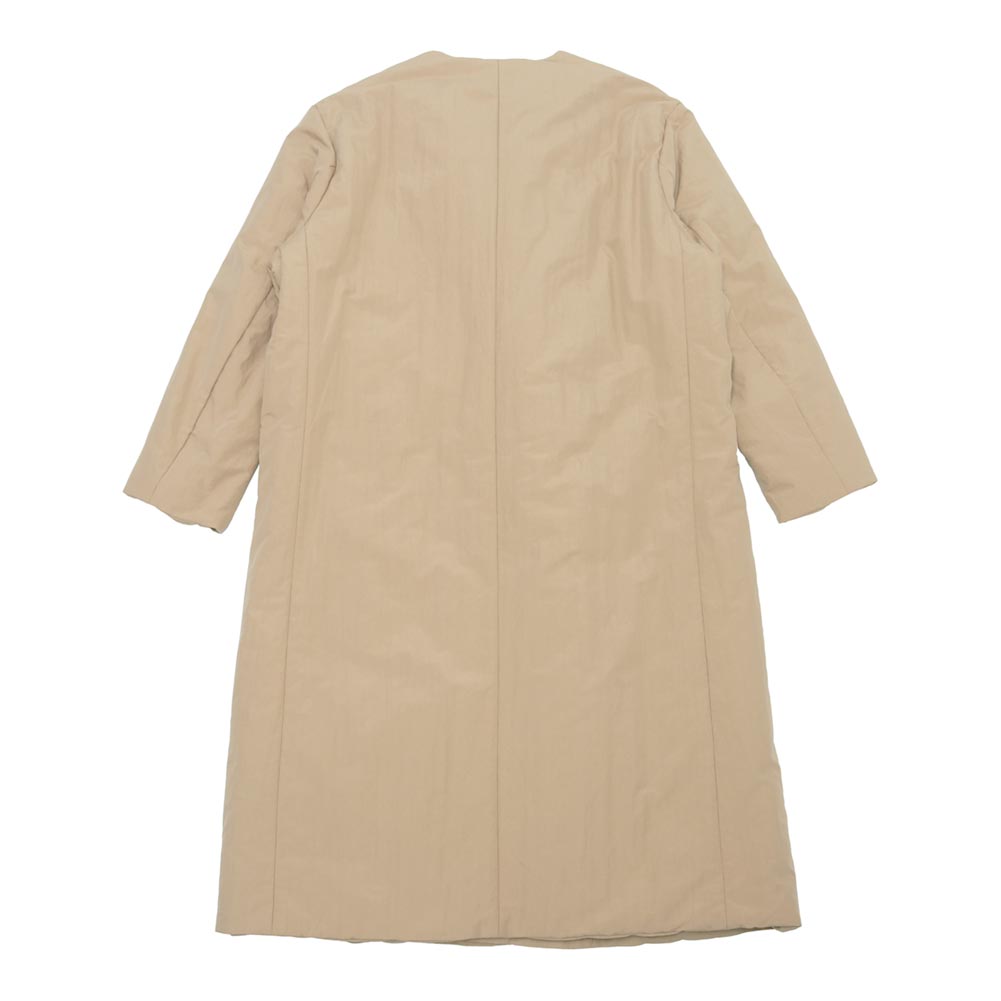 軽い中綿入りのコートは、程よい厚みで着膨れしにくく、柔らかくて身体に沿ってくれるのでスッキリと着れる着心地のよいコートです。 ノーカラーで、すっきりとしたデザインが巻物などのスタイリングもしやすいです。 とにかく軽くて暖かく、どんなスタイルにも合わせやすいので、必須アイテム間違いなしですね!!