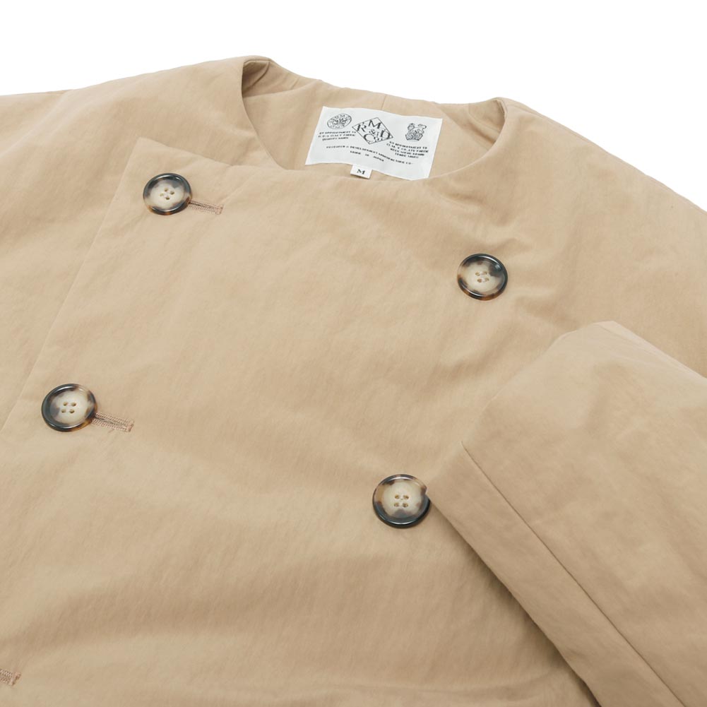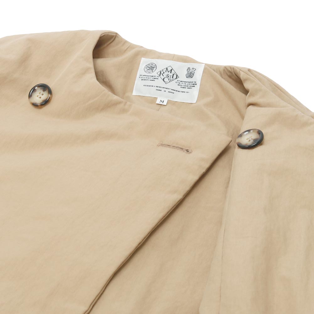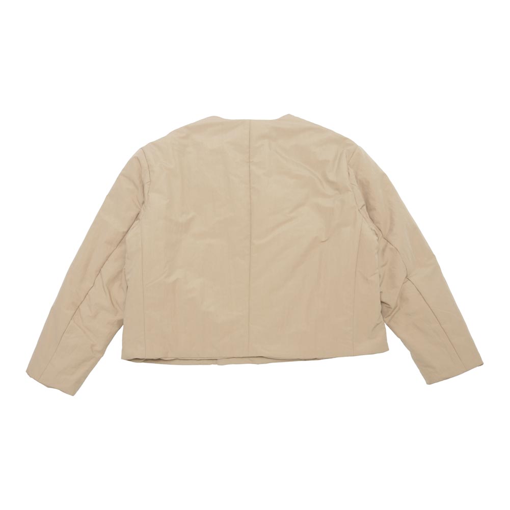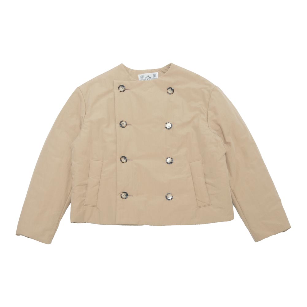 軽い中綿入りのコートは、程よい厚みで着膨れしにくく、柔らかくて身体に沿ってくれます。 着丈が少し短めなのも可愛いく、スッキリと着れる着心地のよいコートです。 ノーカラーで、すっきりとしたデザインが巻物などのスタイリングもしやすいです。 とにかく軽くて暖かく、どんなスタイルにも合わせやすいので、必須アイテム間違いなしですね!!
