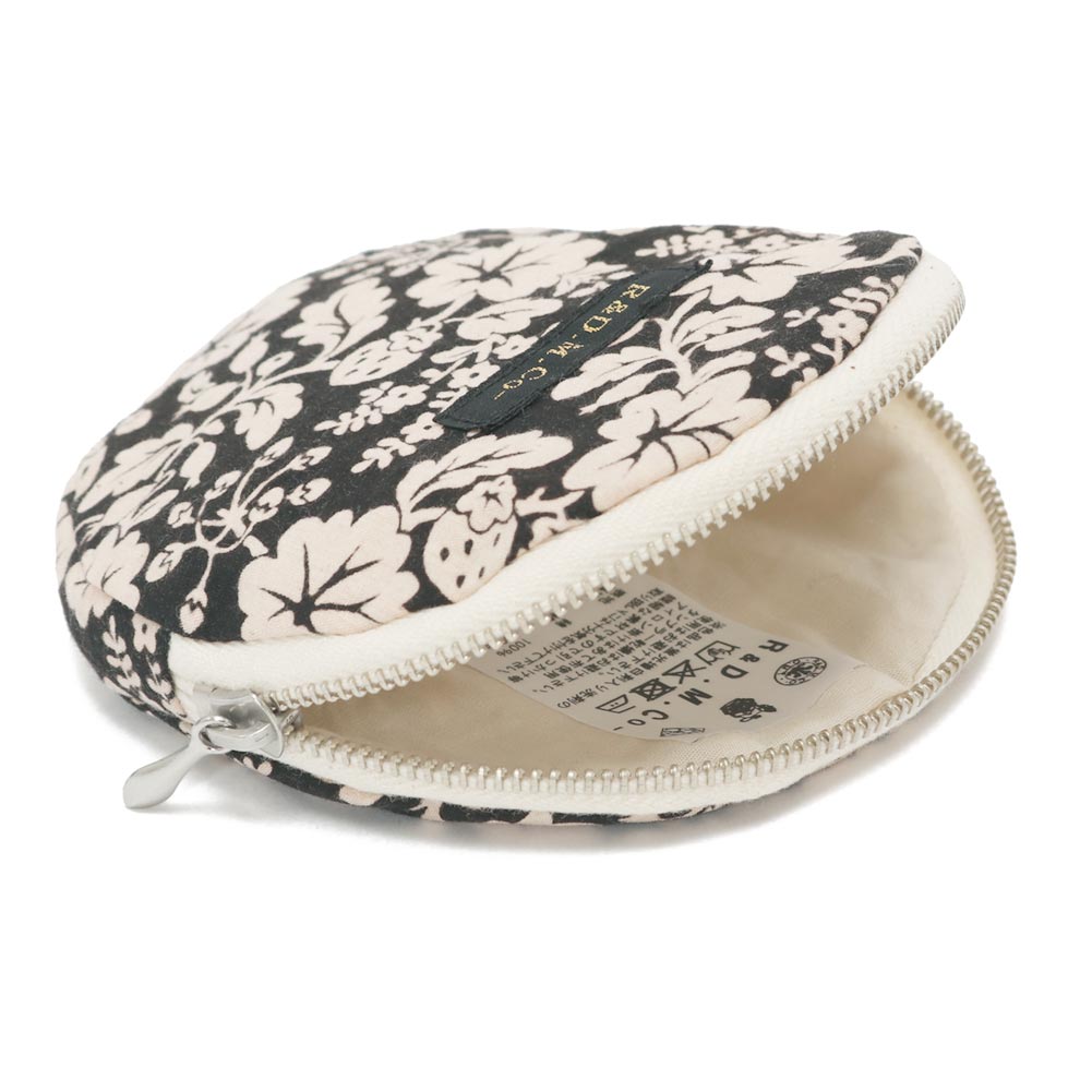 人気のWILD BERRY柄ポーチ!! 軽くて柔らかくて使い勝手の良いサイズ。小銭入れにしたり、アクセサリーなどの収納に便利なサイズ感となっています。コットン素材でオールシーズン愛用できます。 バッグからチラッと見えても可愛くラウンドになった形がまた可愛いデザインになっています。