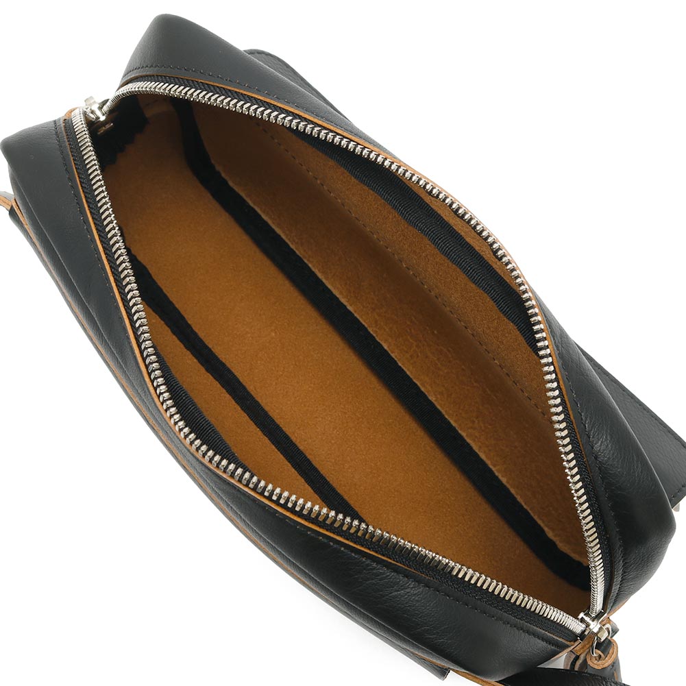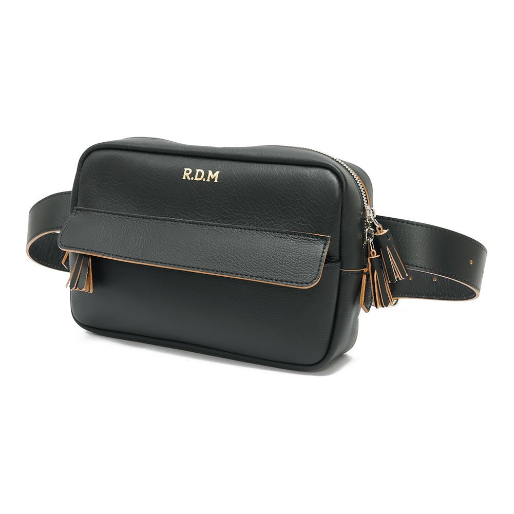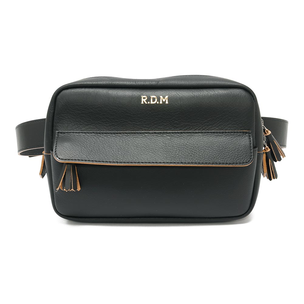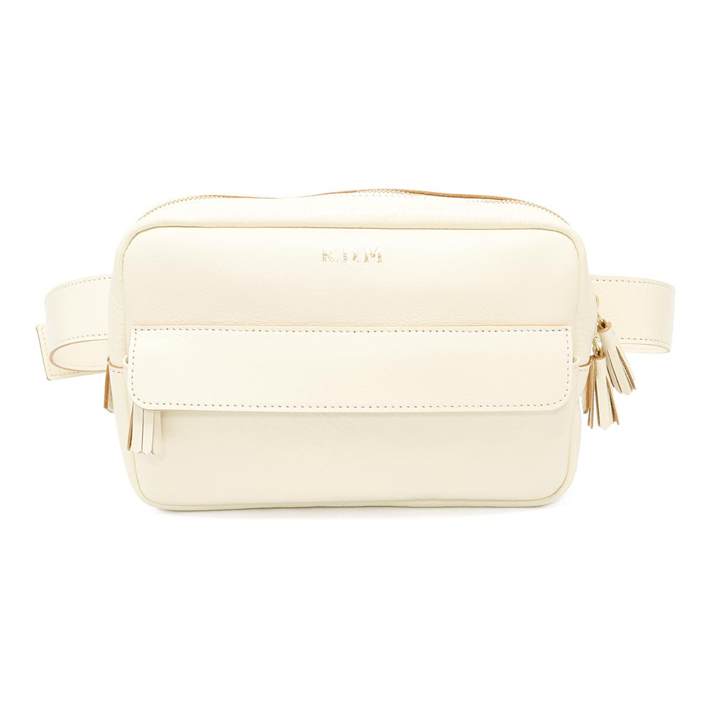 柔らかで馴染みのいい牛革を使用したボディバッグ。ショルダー部分は調節が効きますので、斜めがけや腰にぐるっと巻いてお使いいただけます。長財布のほか、携帯電話やハンカチ、ポーチなど必要なものは収まりそうです。また、フロントには細々したものを収納できるポケットがついています。ジップ持ち手のフリンジや、ゴールドの刻印もアクセントに。ある程度の荷物は入りつつ、嵩張らない程よいサイズ感が便利に使えるバッグです。