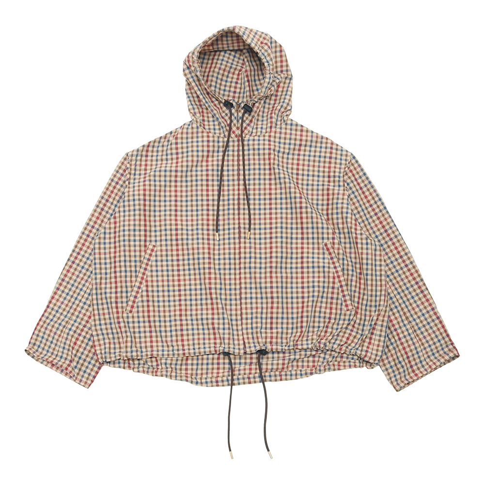 トラディショナルな雰囲気を醸し出す、ガンクラブチェックのブルゾン。淡い色合いが優しく馴染み、コーディネートの主役に。ハリとやわらかさを併せ持つタフタ生地を使用し、とても軽い着心地です。首元と裾にはドローコードが通っているので、着こなし方をアレンジできます。季節の変わり目に活躍する一着です。