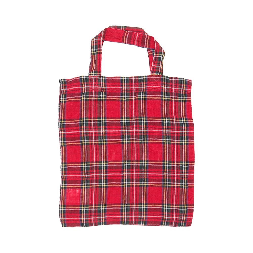 タータンチェックが目を惹くミニサイズのトートバッグ。小ぶりですが、スマートフォンやお財布、ポーチなど必要最低限のものは入れられます。ちょっとしたお出かけに、サブバッグとして、様々な使い方が楽しめます。リネンならではのドライなタッチは使うほどに馴染み、経年変化が楽しめそうです。シンプルな装いのアクセントに、ぜひどうぞ。