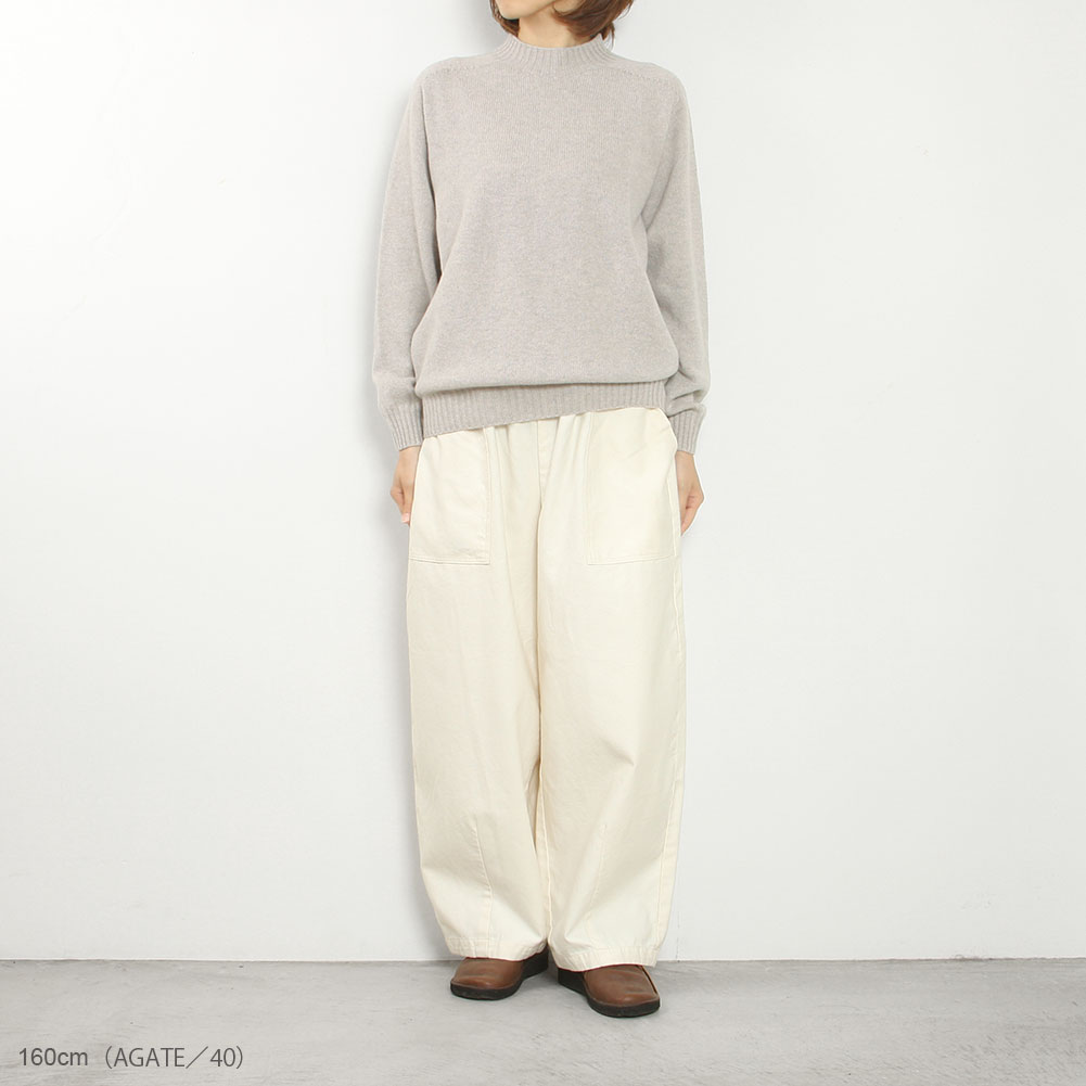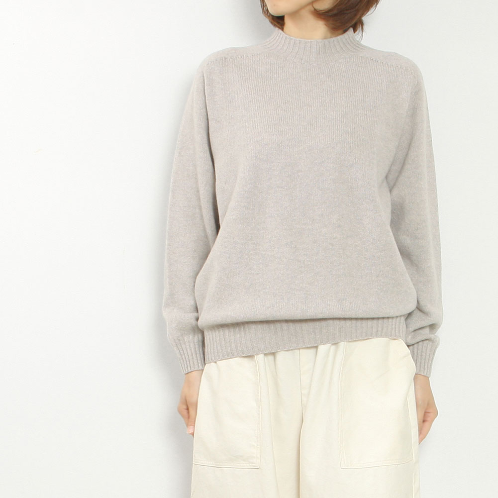 少しゆったり目に着られるように40と42の2サイズ展開。裾がリブ仕様でお腰で止まるようになっていて、身体のラインを拾わないサイズ感です。シンプルに1枚でサラッと着こなせそう。タートルが苦手な方にもオススメで、モコモコ過ぎないのでアウターなども羽織りやすいです。