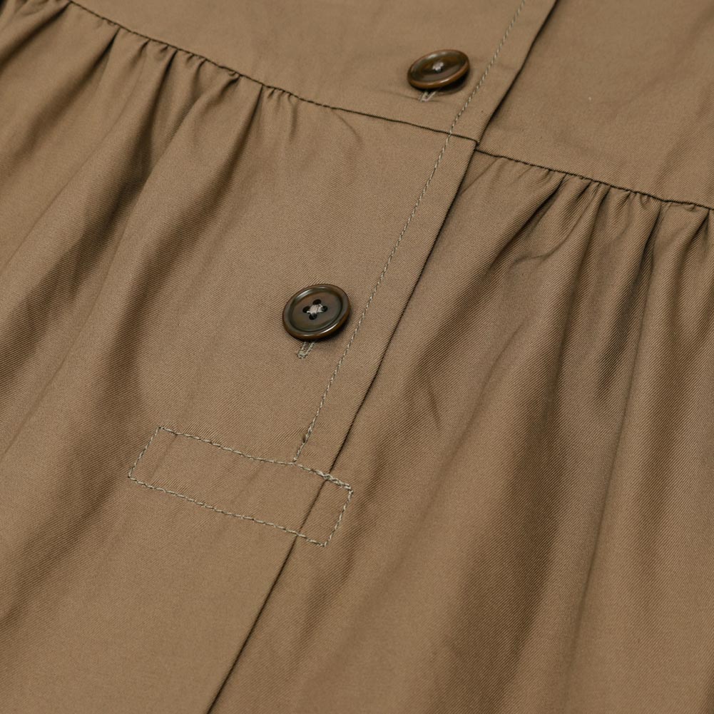 生地には、しっとりとした重みと上品な光沢のあるコットンギャバジンを使用し、動くたびにスカートがふんわり広がり自然な存在感を演出します。