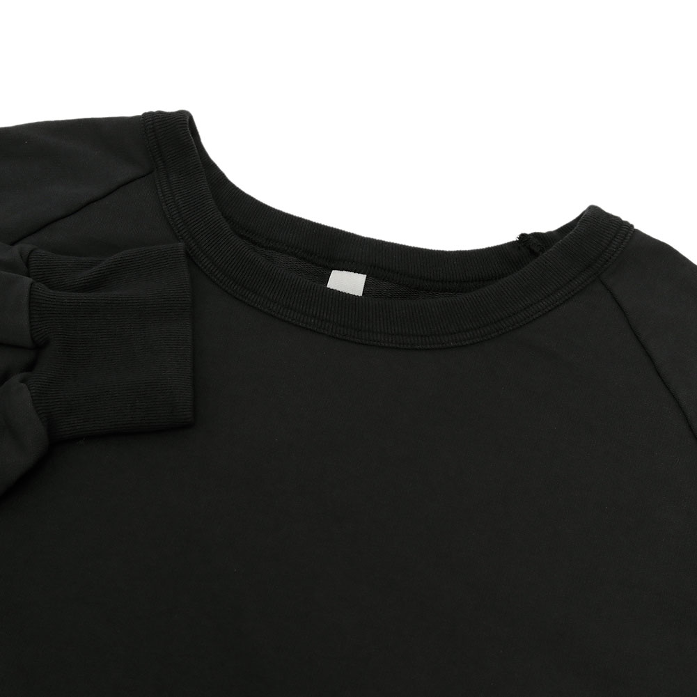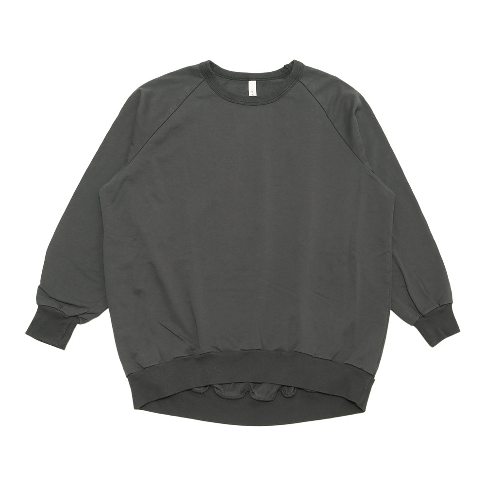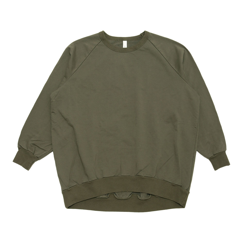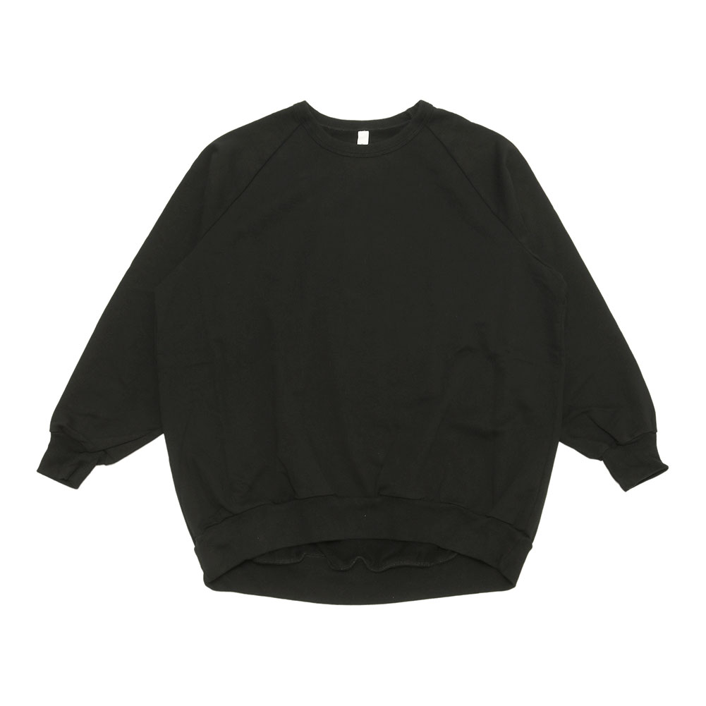 前後差のあるデザインと、少し長めの着丈ですが、リブになっているので折り返すとフワッと着られて可愛いです。肩馴染みのよいラグランスリーブ仕様で着る人に馴染みます。