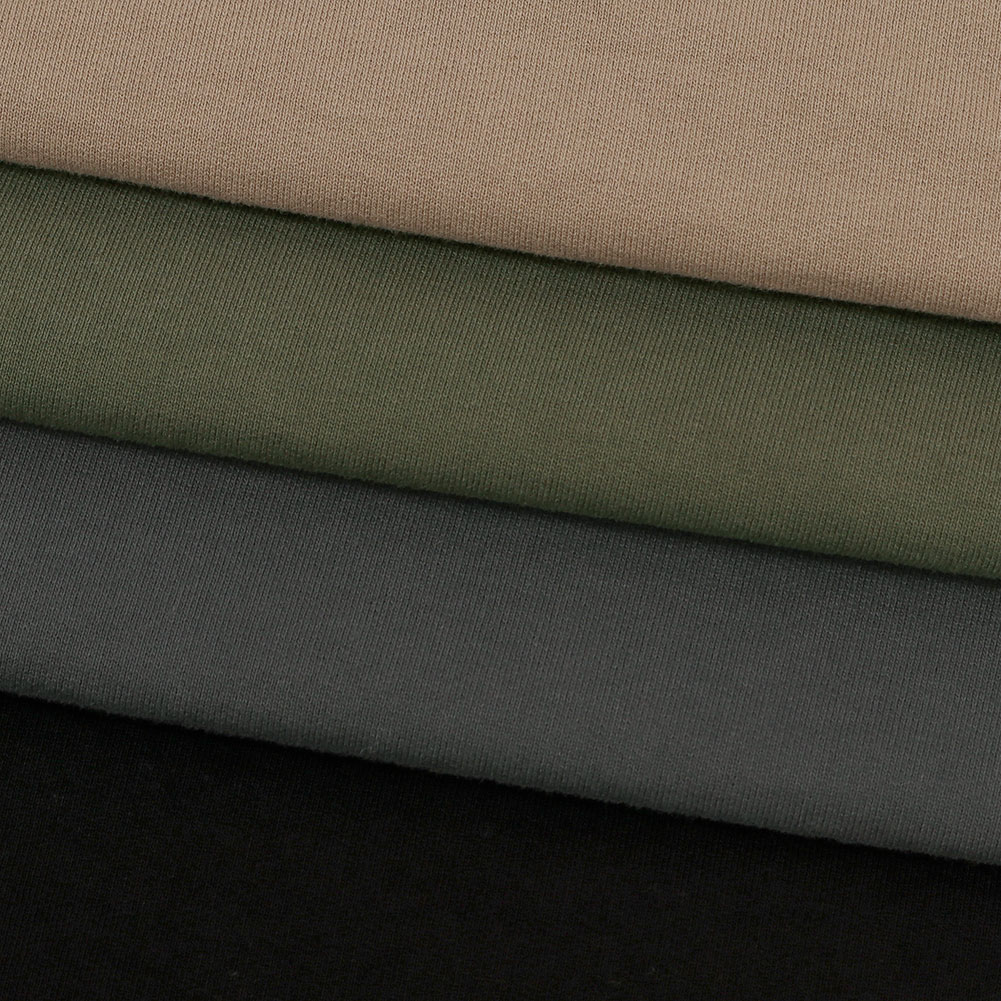 毛羽が少なく、着心地のよいドライタッチな風合いが特徴の生地。繰り返しお洗濯をしても型崩れしにくく、毛玉も発生しにくいです。裏地をパイル状に編んだ裏毛仕様で、保温性と吸湿性があり比較的長いシーズンお楽しみいただけます。