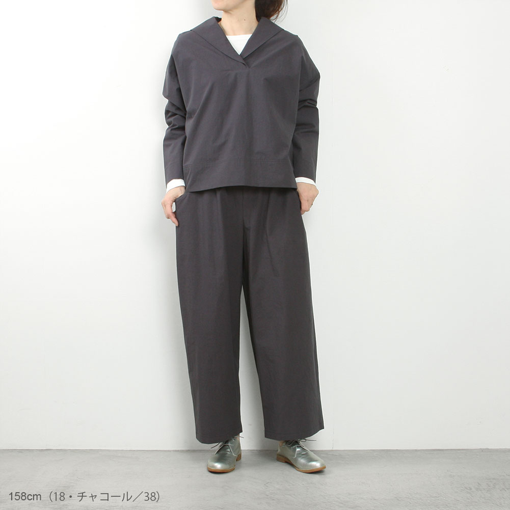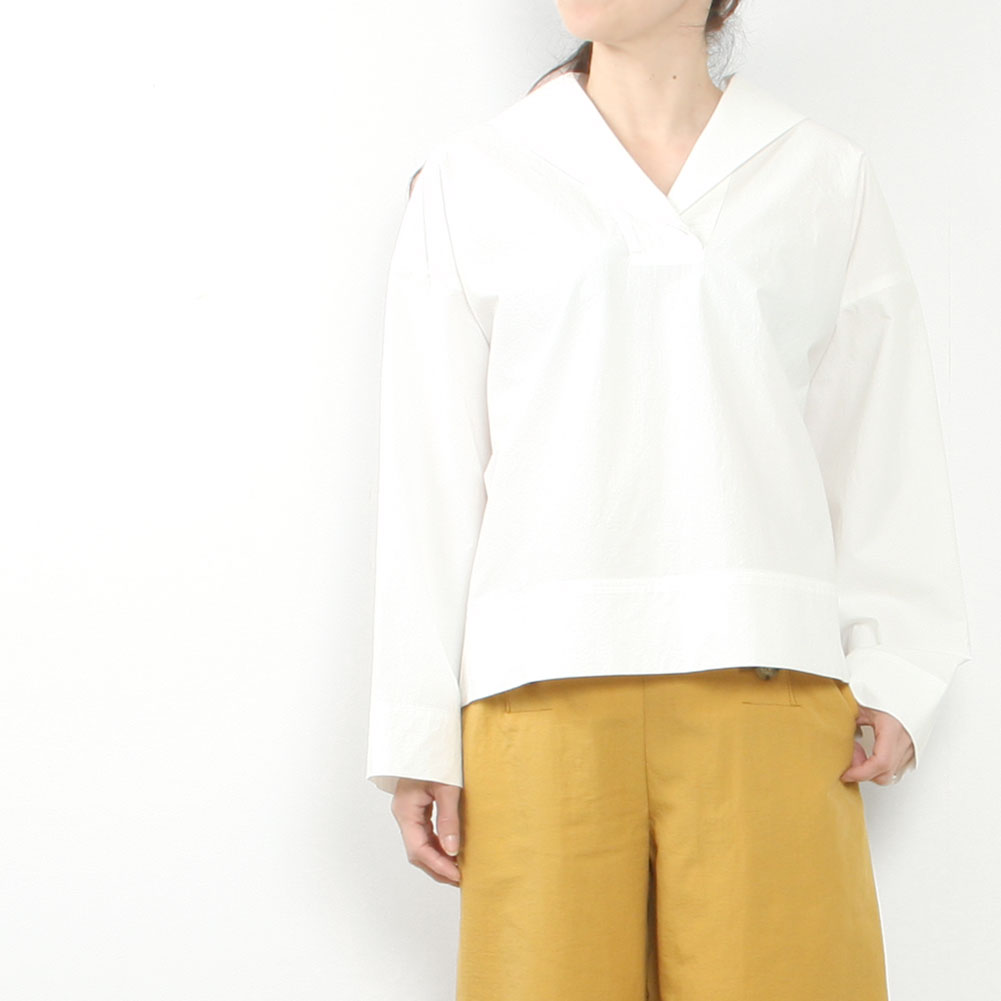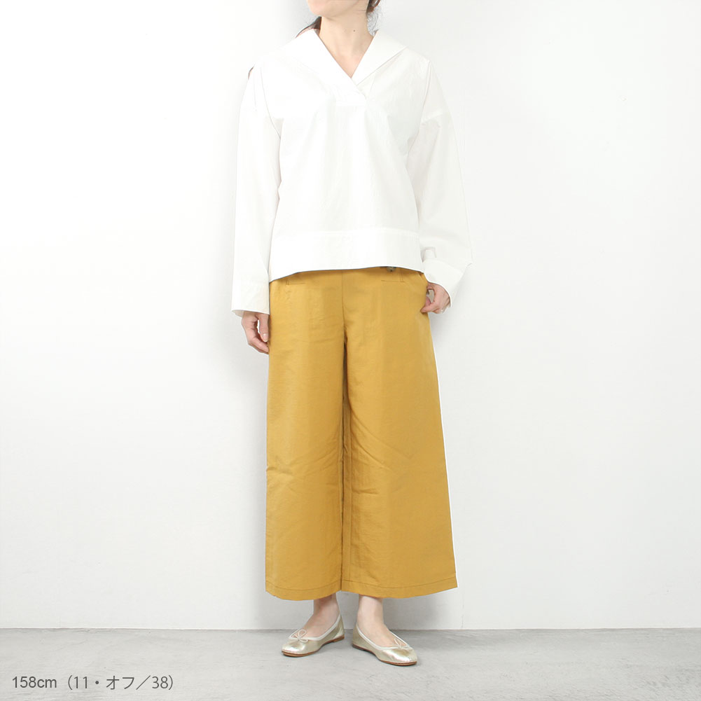 大人カジュアルなセーラーブラウスは高密度に織り上げられた生地で、ワッシャー仕上げをし、しっかりとした生地で程よい張りもあり、ヴィンテージ風の風合いに仕上がっています。