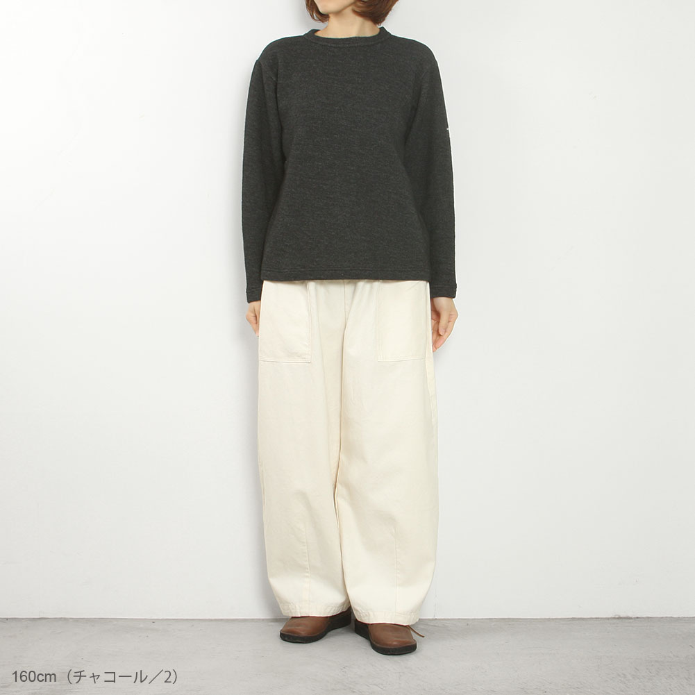 癖のないデザインでどんなボトムスとも好相性。秋冬のレイヤードに重宝するウールトレーナーです。