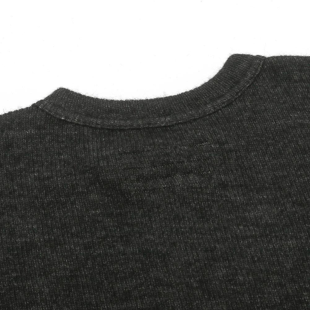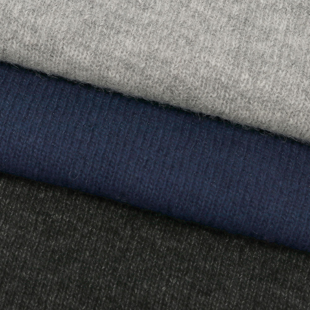 ナイロン21%をブレンドした温かみある生地を使い、裏面には着心地を考えられたやさしいコットン素材を使ったダブルフェイスの接結素材。2枚合わせにて仕立てられているので、アンダーウエアの上からさらりと着られる、ストレスを感じさせない寒い季節のウールトレーナーです。