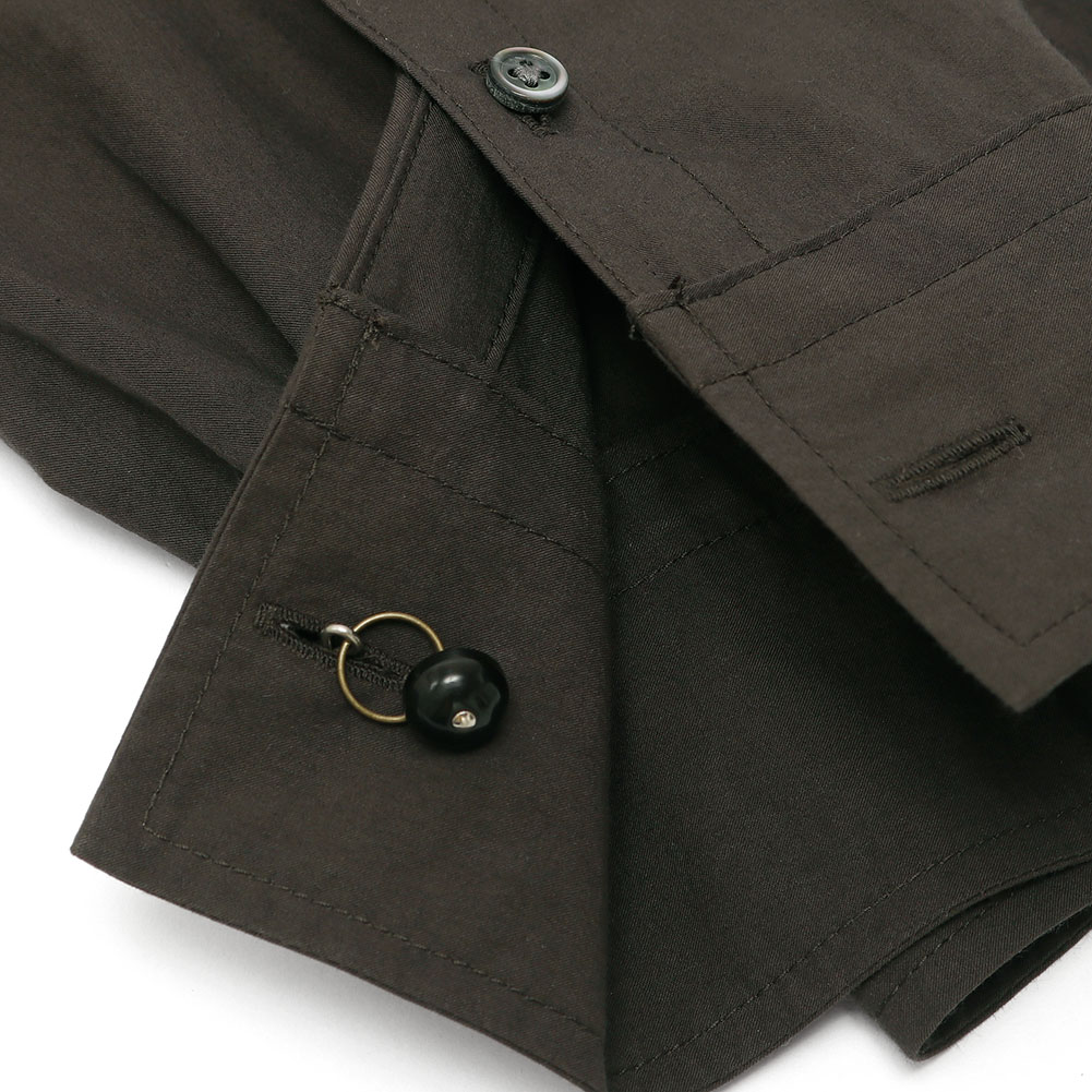 折り返しのカフスや鼓釦、着脱しやすいバックスタイルなど随所にヴィンテージ由来のディテールを残しています。