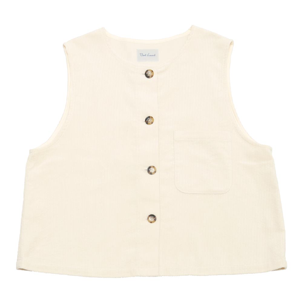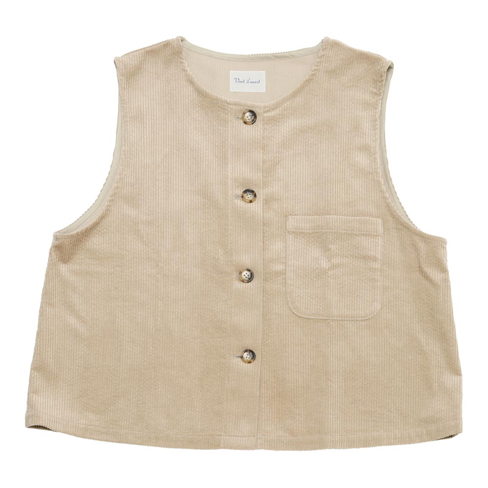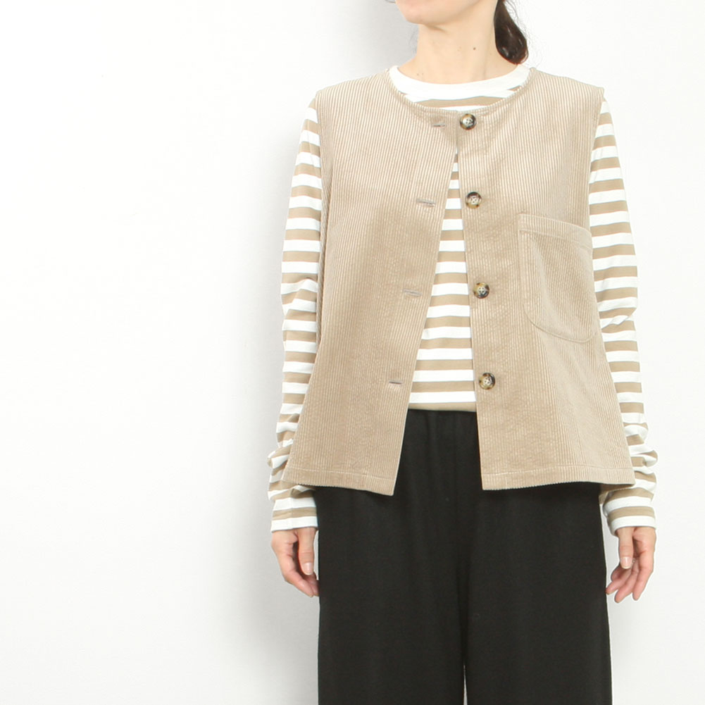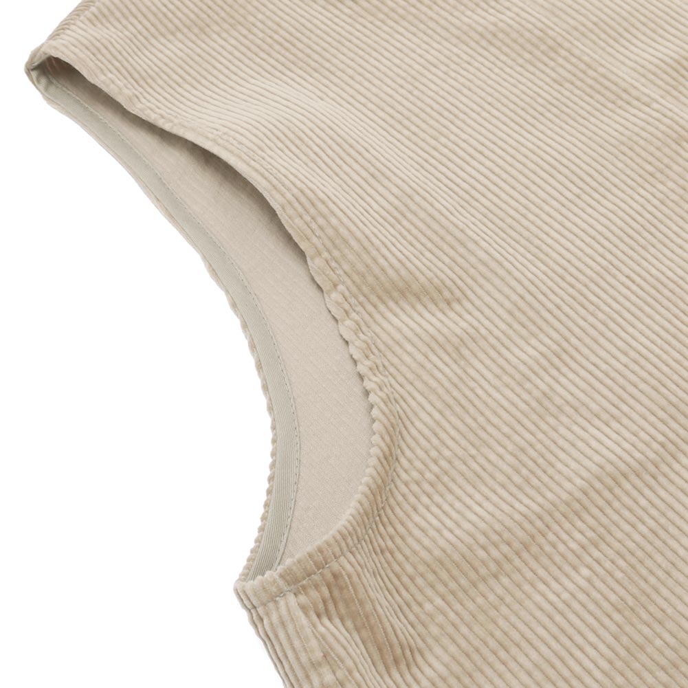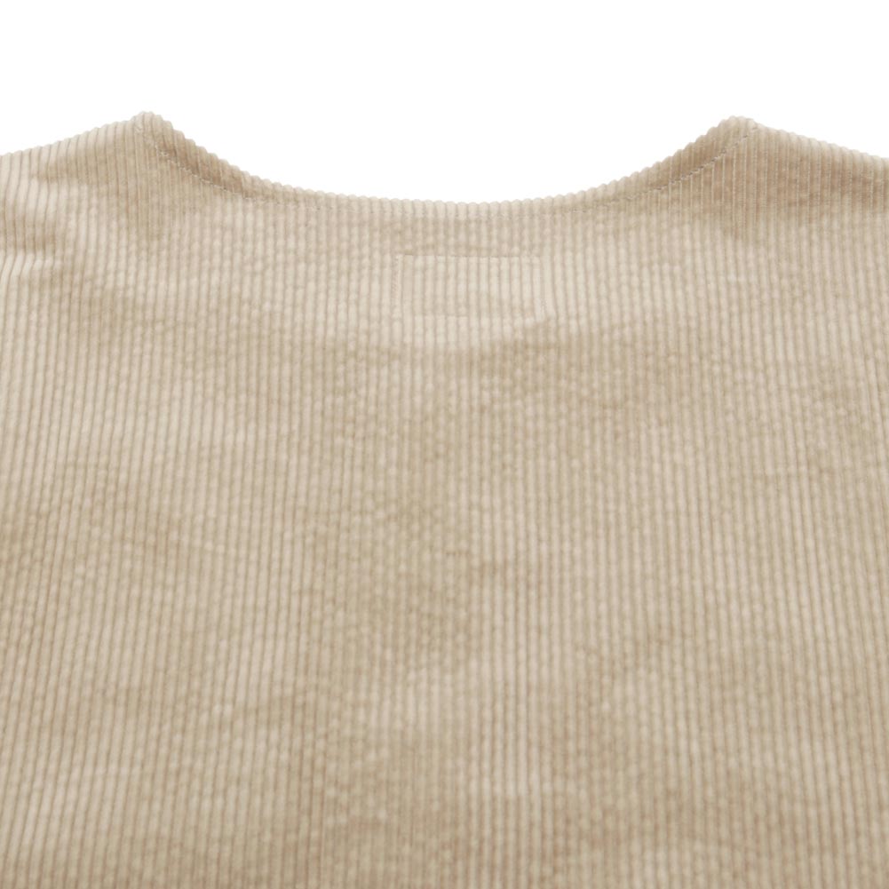 8Wの太めのコーデュロイはサッカーの表情も表現した凹凸感のあるふんわりした素材感のあるベスト。 見た目よりも軽くて、柔らかくて重ね着しやすそうです。