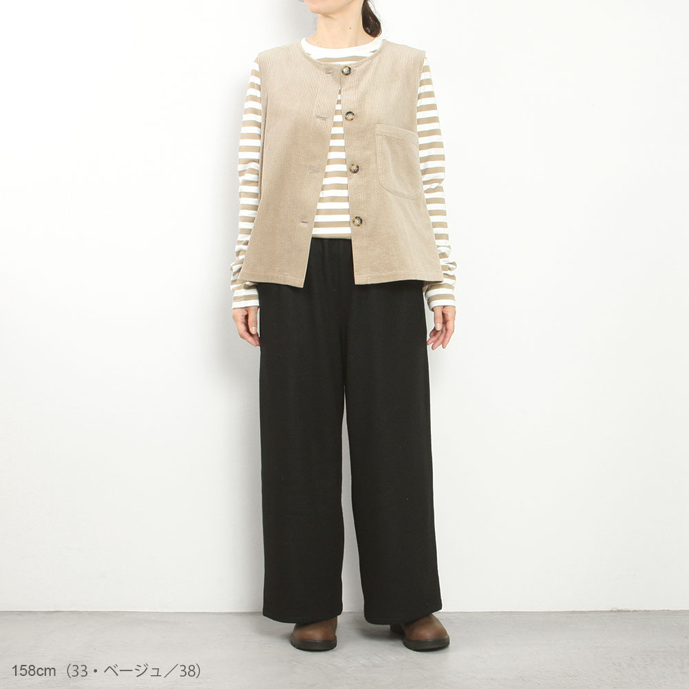 アームホールもゆったりしているので、ゆったりなブラウスやスウェットなどとも重ね着できそうです。