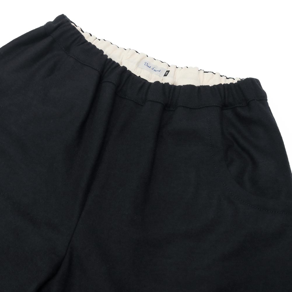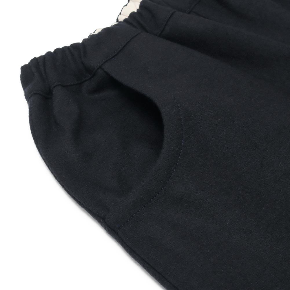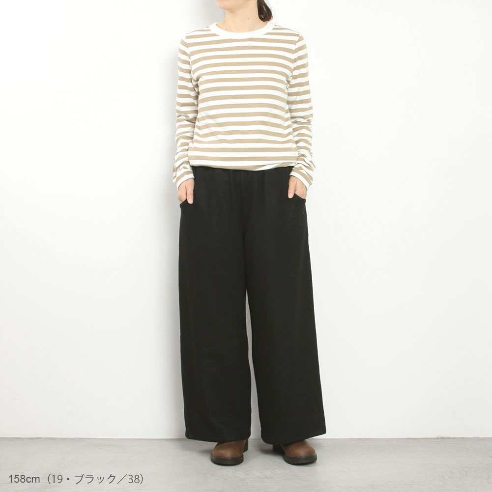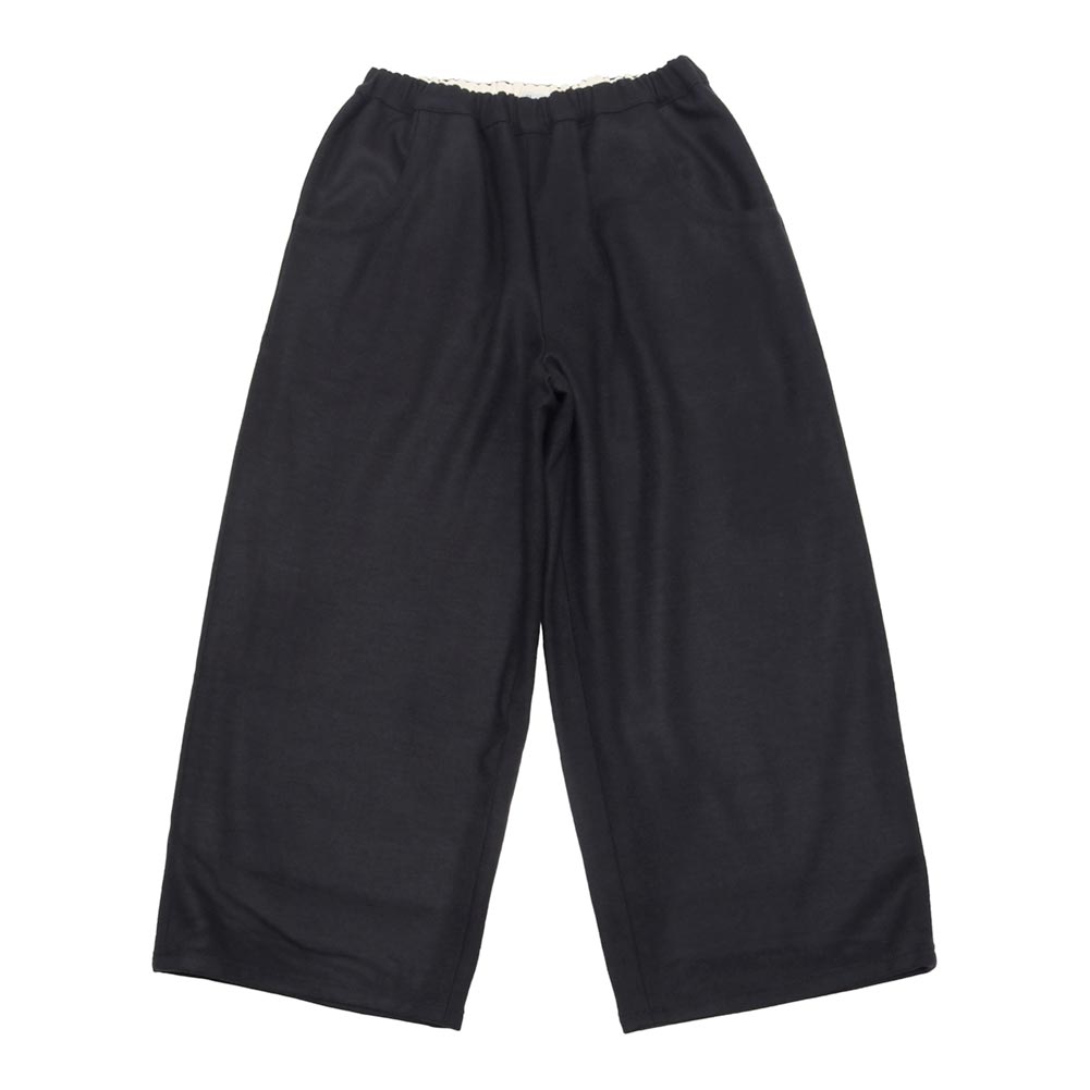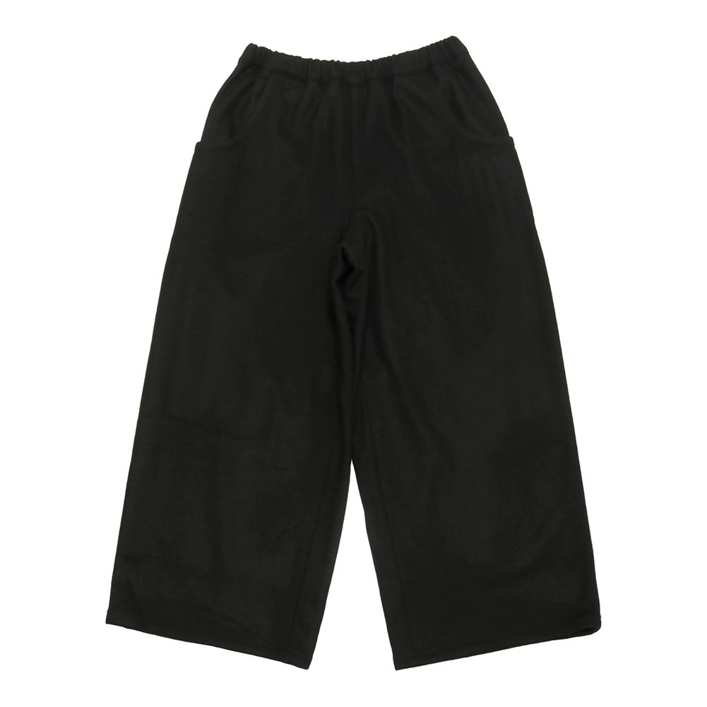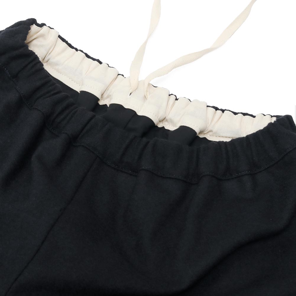 圧縮加工されたニット素材のパンツです。圧縮加工により、密度が細かく厚みもありソフトな風合いで、柔らかい肌触りです。