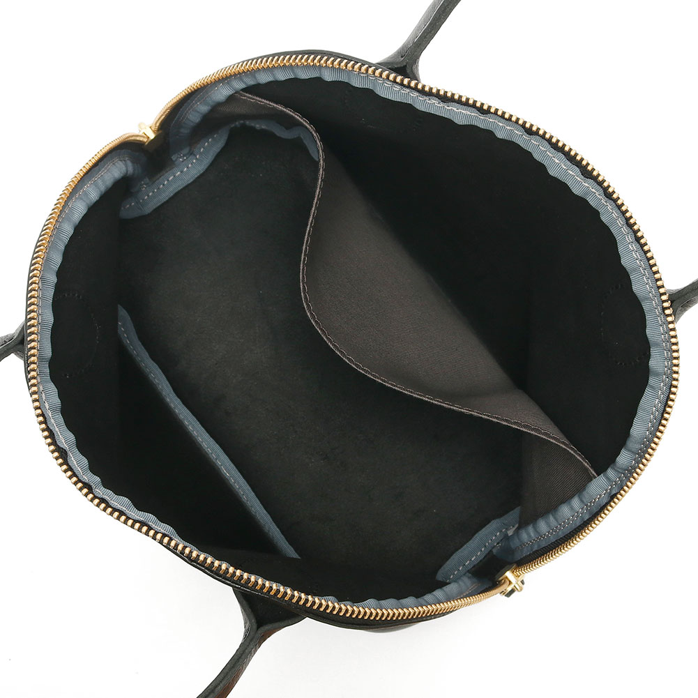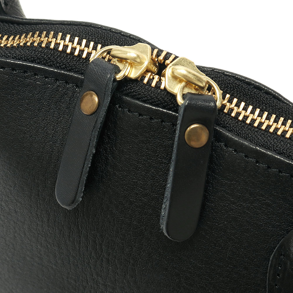 左右に大きく開く間口は、中身を確認しやすく荷物の出し入れがスムーズ、広めのマチで収納力も抜群です。また一枚革仕立てで軽く、柔らかな質感も特徴。
