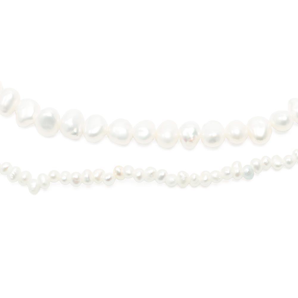 左右で大きさの異なるパールがあしらわれた淡水パールネックレス。