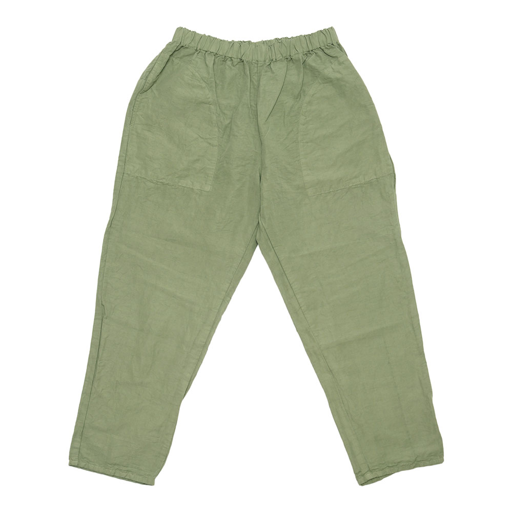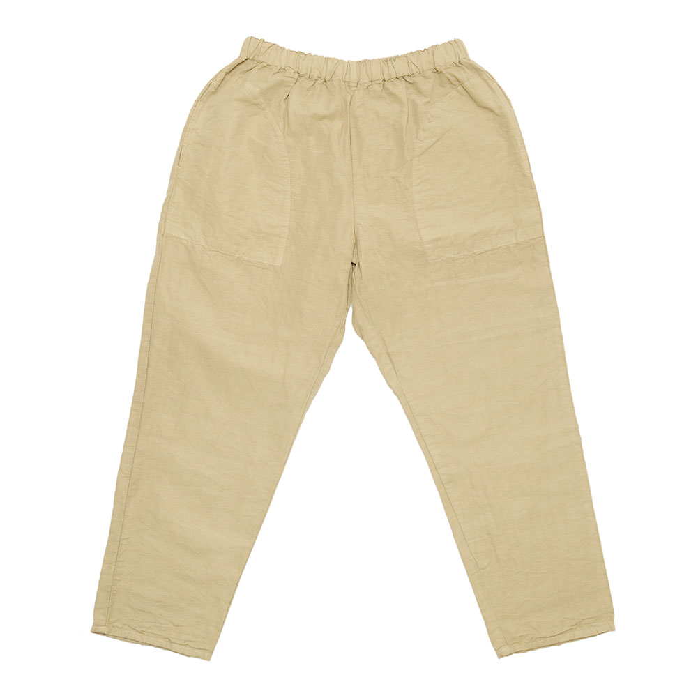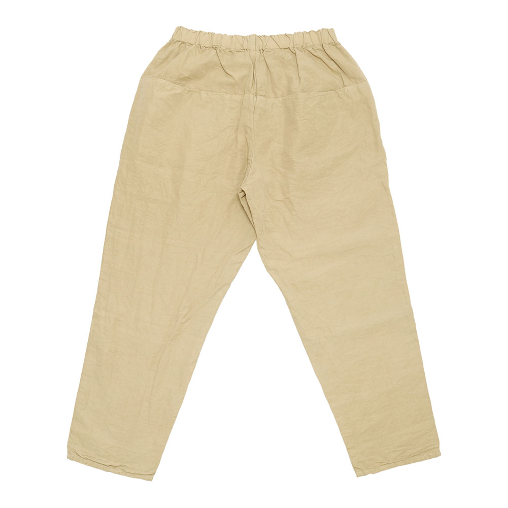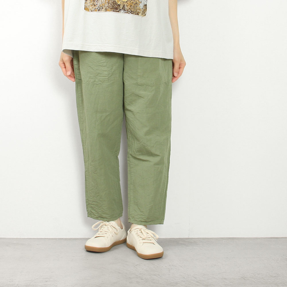 ウエストはゴム紐仕様なのでストレスフリー。スッキリめのテーパードシルエットで、小柄な方にもバランスよく穿いていただけます。